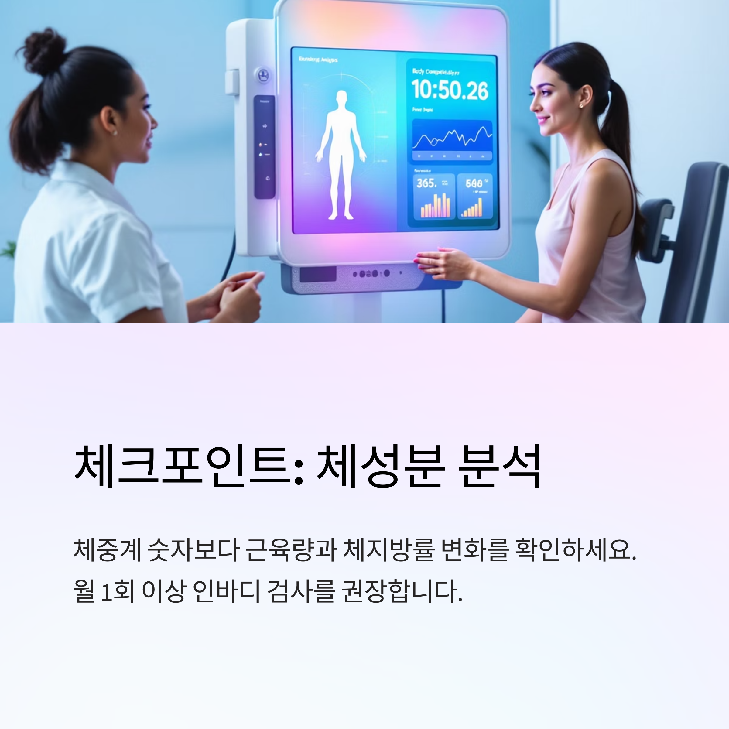 - 체중계 숫자보다 근육량과 체지방률 변화를 확인하세요