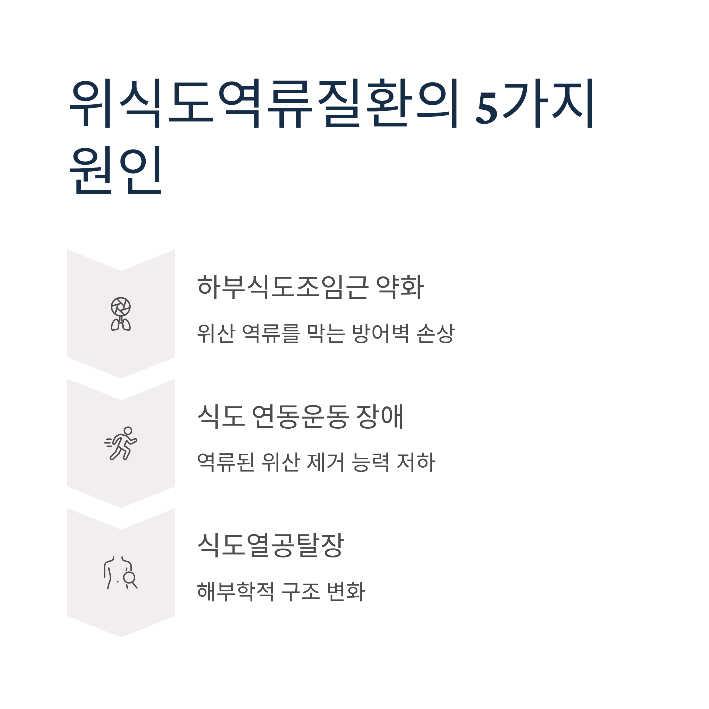 세브란스병원 소화기내과 정다현 교수에 따르면, 위식도역류질환은 다음과 같은 복합적 원인으로 발생합니다: