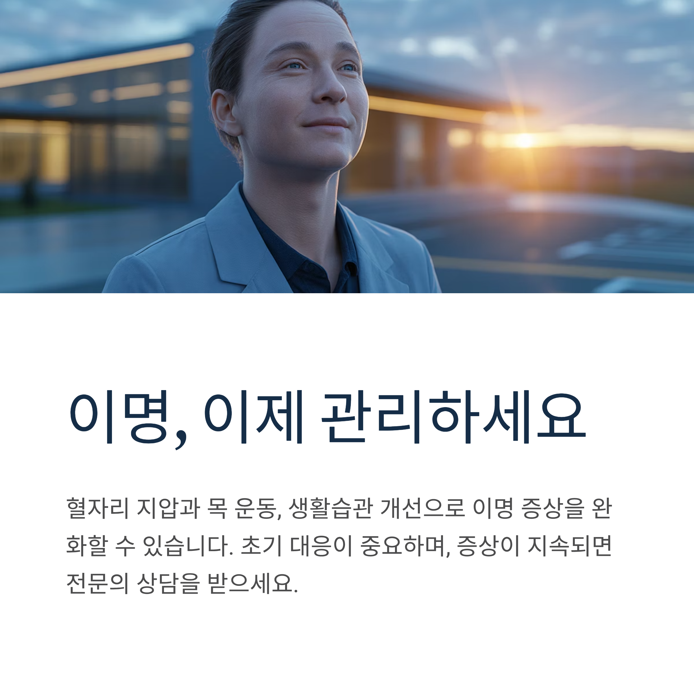 이명은 외부의 물리적인 음원이 없는 상태에서 소리가 들리는 증상으로, 질병이 아닌 여러 원인에 의해 나타나는 신호입니다. 매미 우는 소리, 금속성 기계음, 바람 소리, 사이렌 소리 등 다양한 형태로 나타나며, 주로 조용한 밤에 증상이 심해지는 경향이 있습니다.