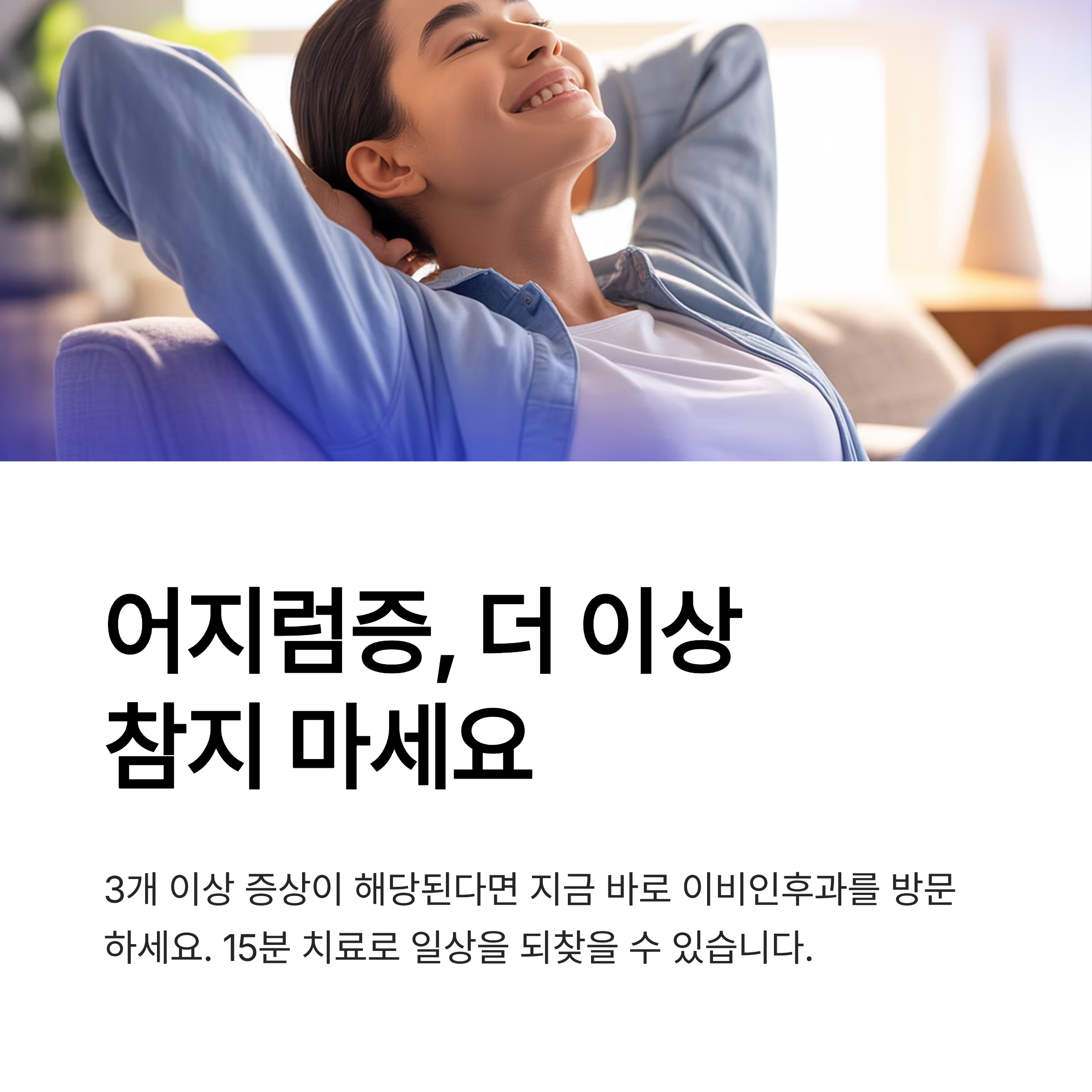 본 글은 일반적인 의학 정보 제공을 목적으로 하며, 개인의 건강 상태나 질병 진단을 대체할 수 없습니다. 어지럼증 증상이 있다면 반드시 이비인후과 전문의의 정확한 진단과 치료를 받으시기 바랍니다.
