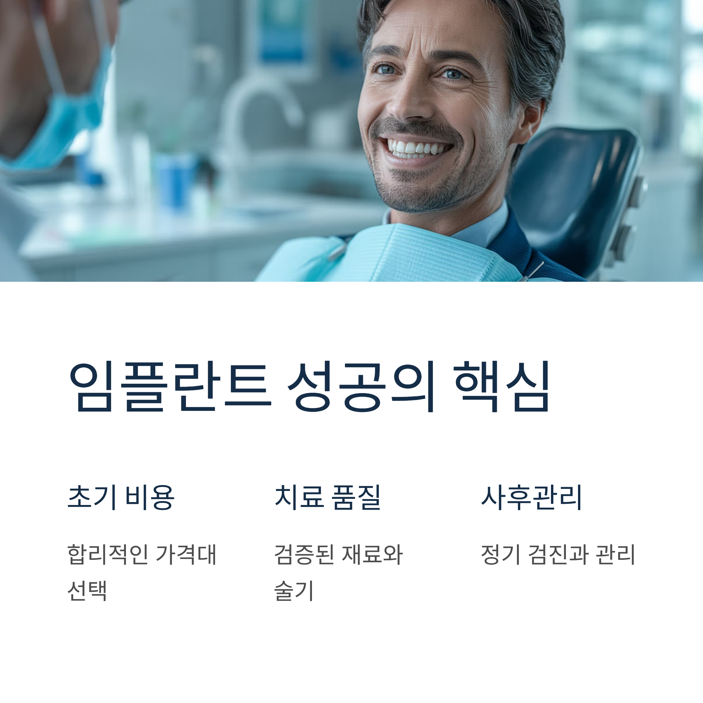 비용만 보고 결정하기보다는 전체 치료계획과 포함 항목을 꼼꼼히 비교해야 합니다. 임플란트는 초기 비용이 크지만 10년 이상 사용할 수 있는 장기 투자이므로, 품질과 사후관리를 우선 고려하는 것이 현명합니다.