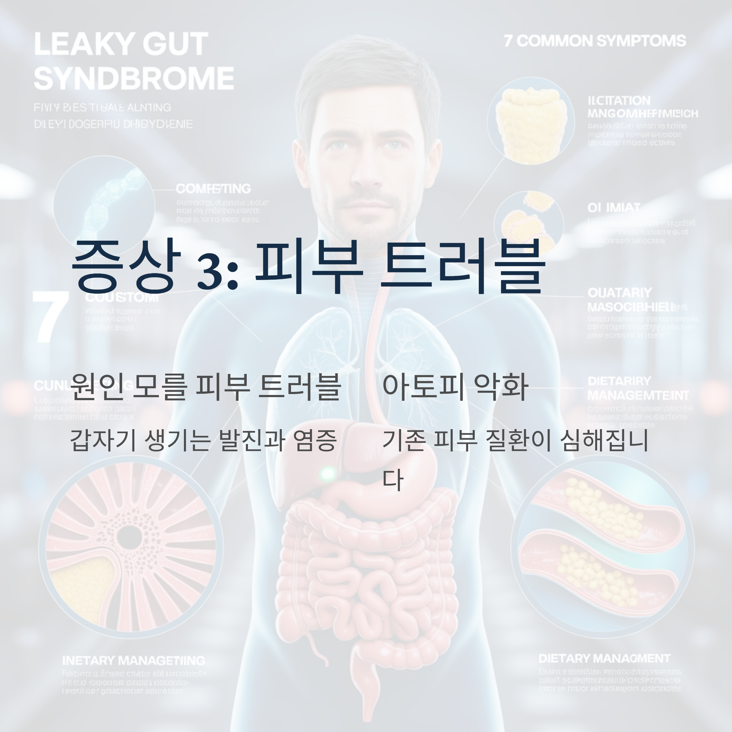 "속이 불편한데 검사해도 이상 없다고요?" 만성피로와 원인 모를 소화불량에 시달리고 있다면 장누수 증후군을 의심해보세요. 장 점막이 손상되어 독소와 세균이 혈류로 유입되면서 전신에 다양한 증상을 일으키는 장누수증후군은 최근 현대인들에게 급증하고 있습니다.