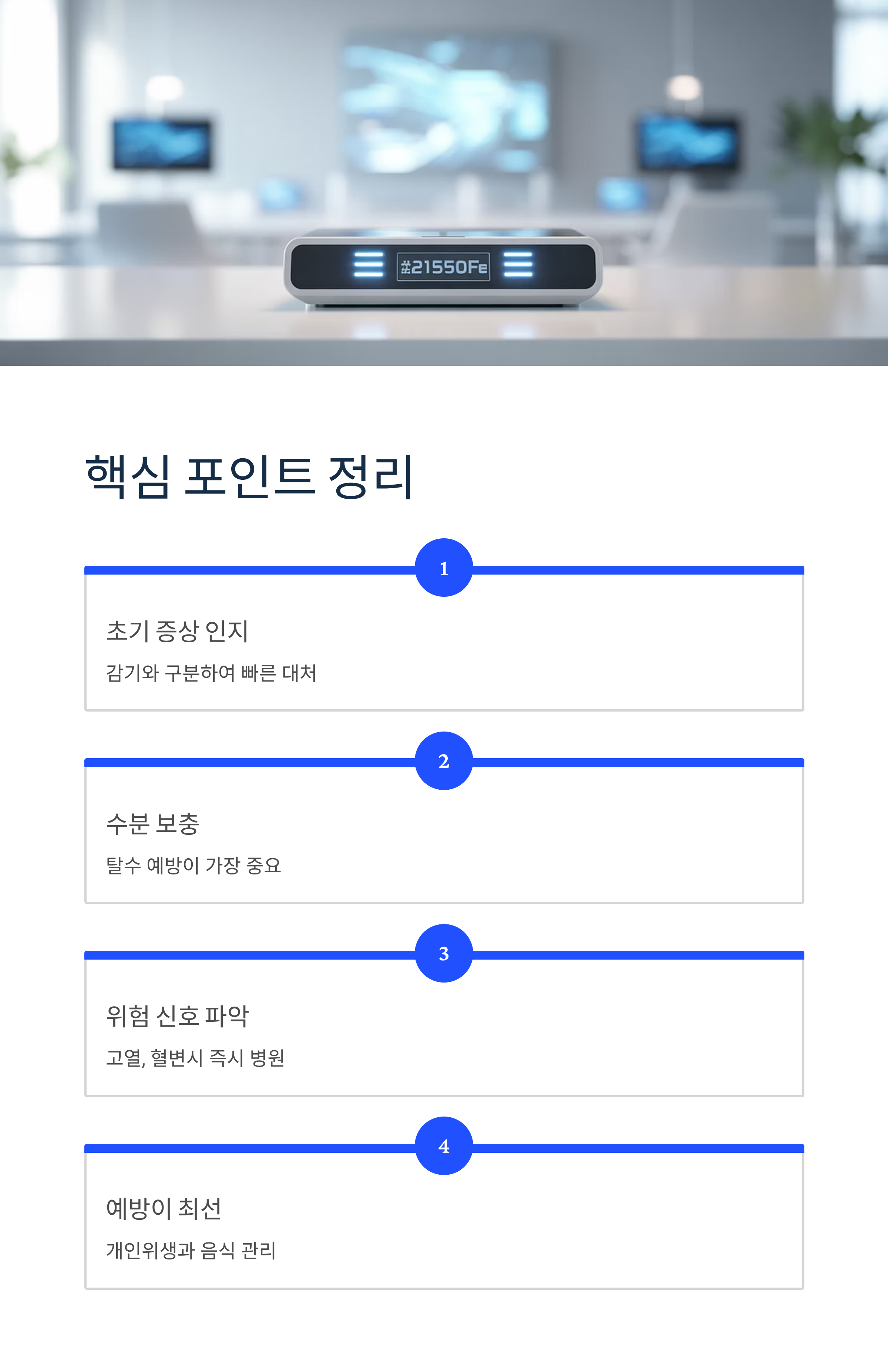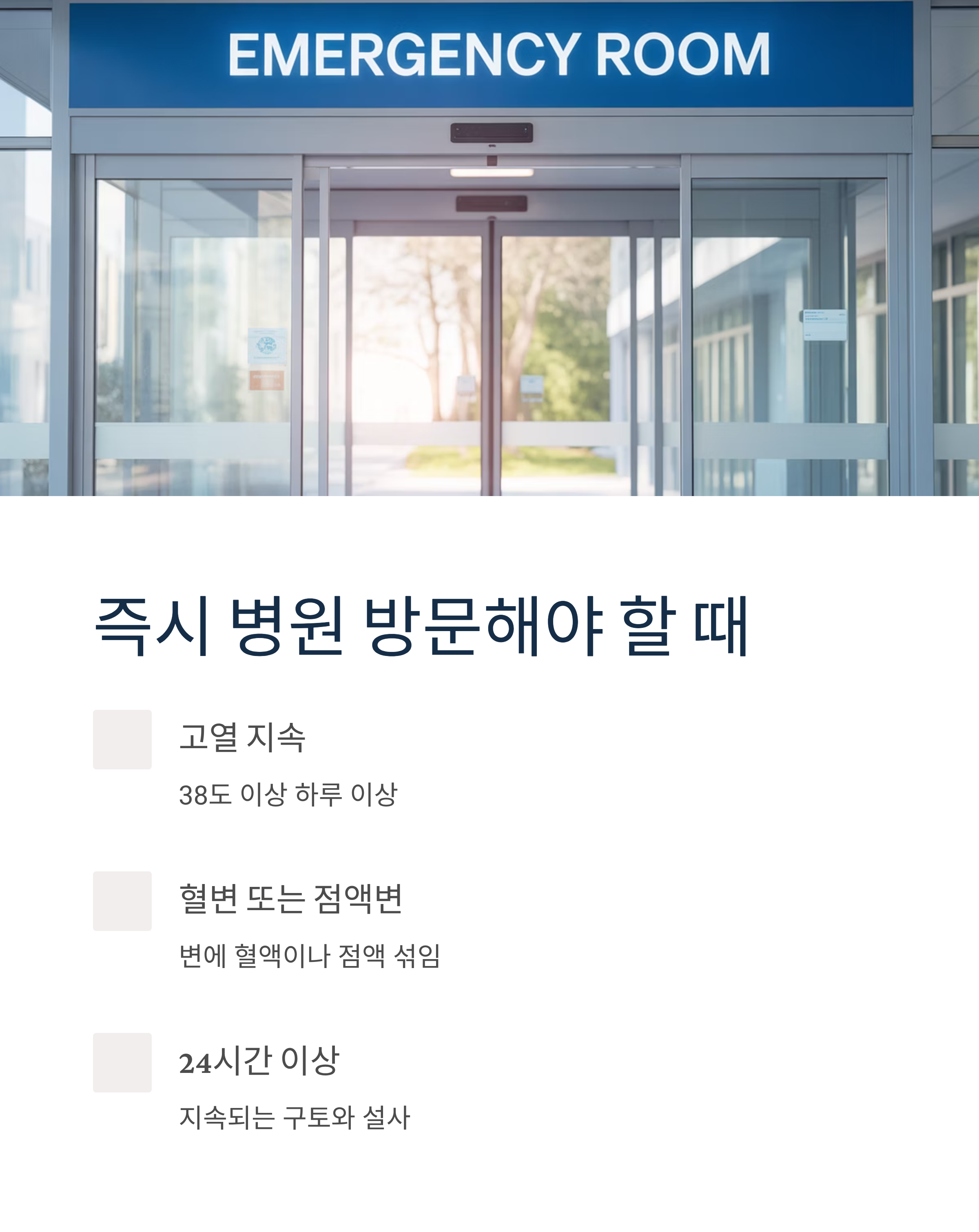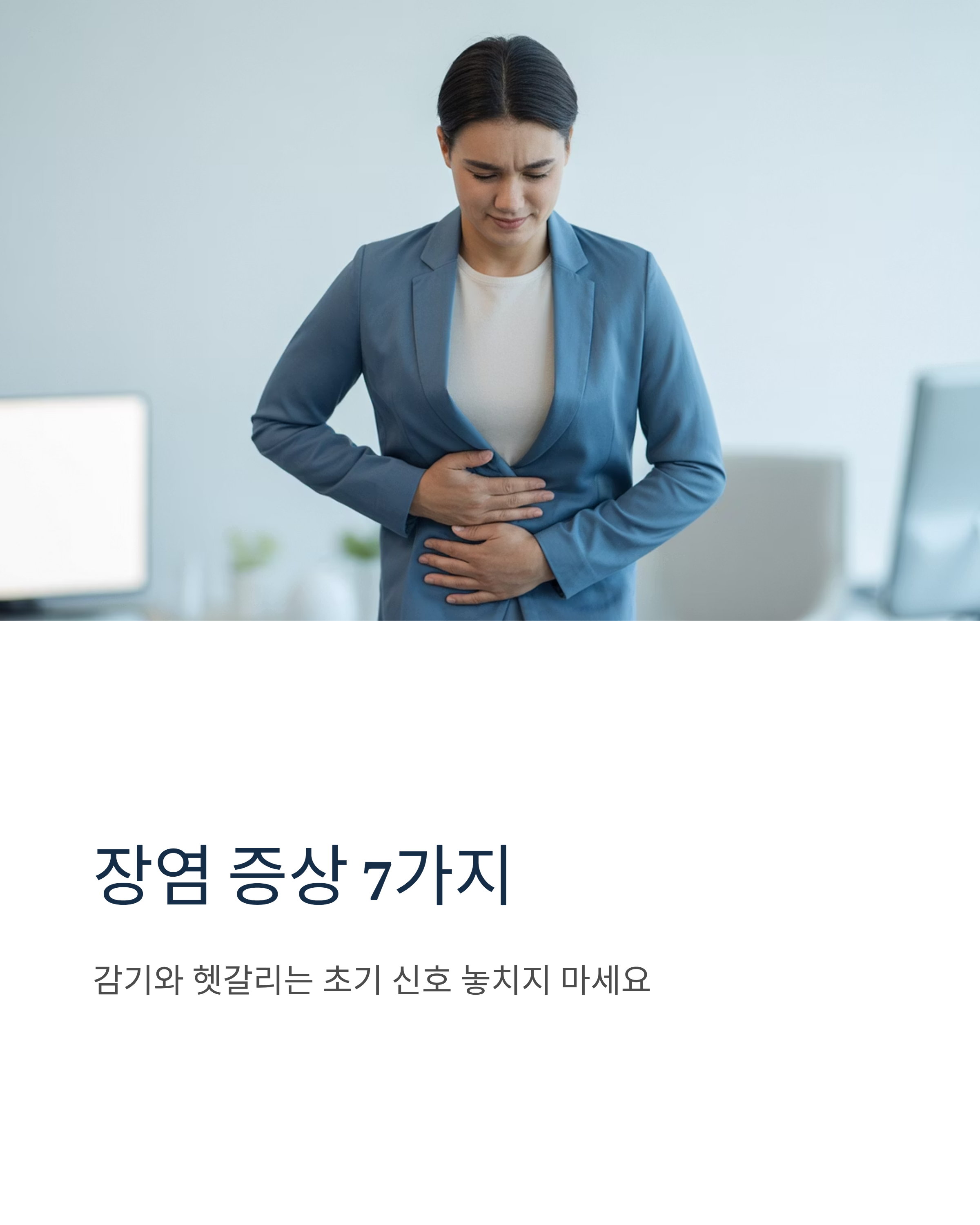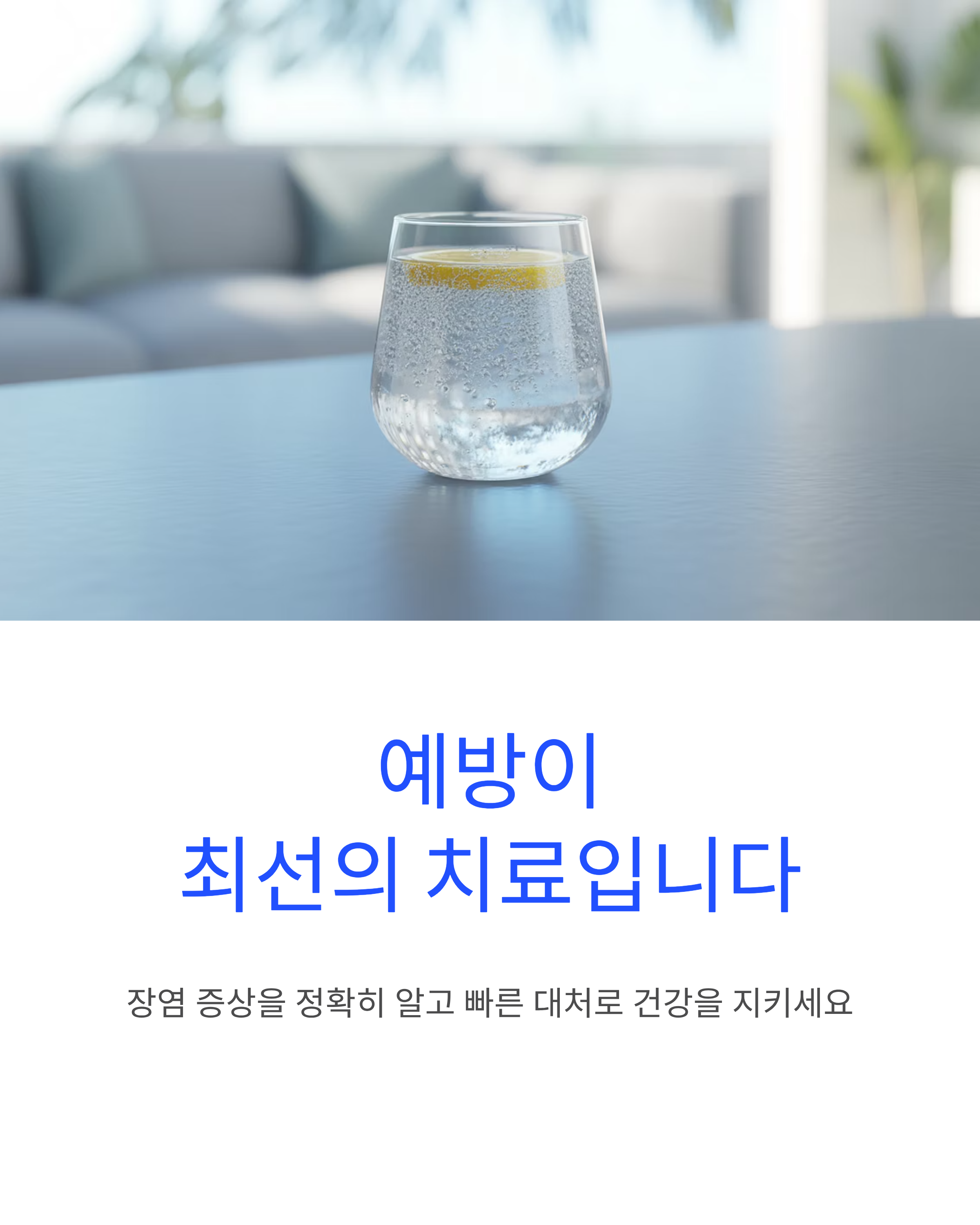 장염은 초기 증상이 감기와 비슷해 방치하기 쉽지만, 빠른 대처가 중요합니다. 복통, 설사, 구토가 나타나면 즉시 수분을 보충하고 충분한 휴식을 취하세요. 특히 고열, 혈변, 심한 탈수 증상이 동반되면 반드시 병원을 방문하여 적절한 치료를 받아야 합니다.