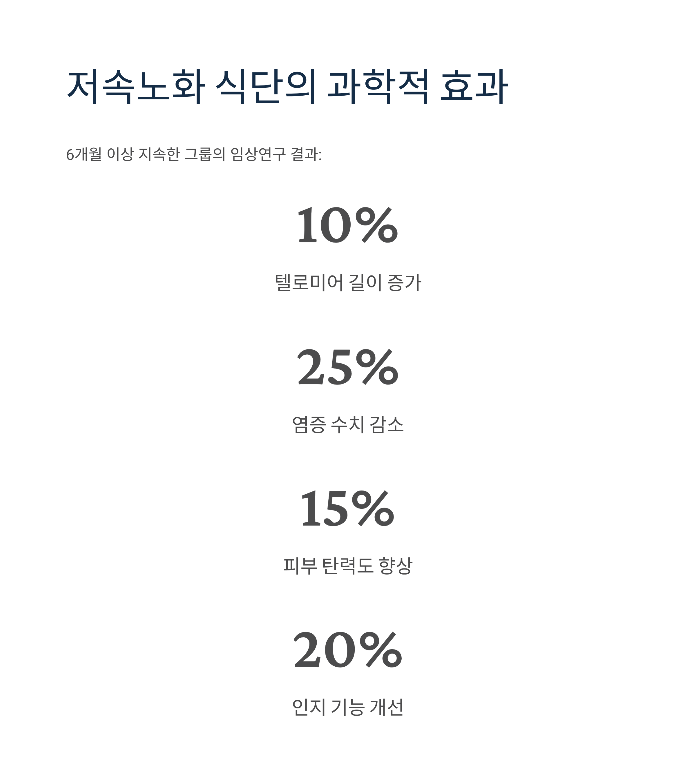 임상연구에 따르면, 저속노화 식단을 6개월 이상 지속한 그룹에서: