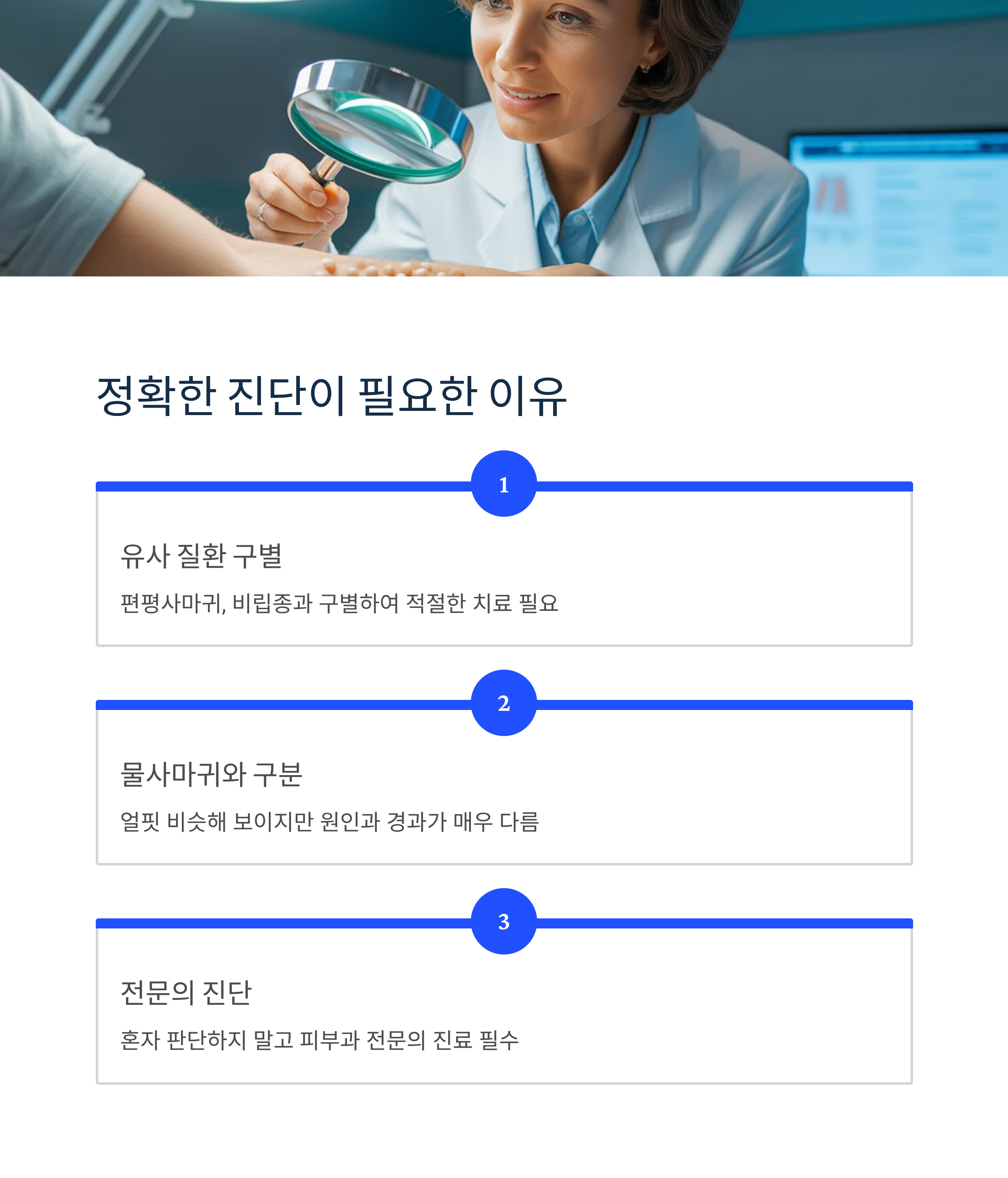쥐젖은 얼핏 보면 물사마귀와 비슷해 보이는데, 두 질환은 원인과 경과가 매우 다릅니다. 따라서 혼자 판단하지 말고 피부과 전문의의 정확한 진단을 받으시기 바랍니다.
