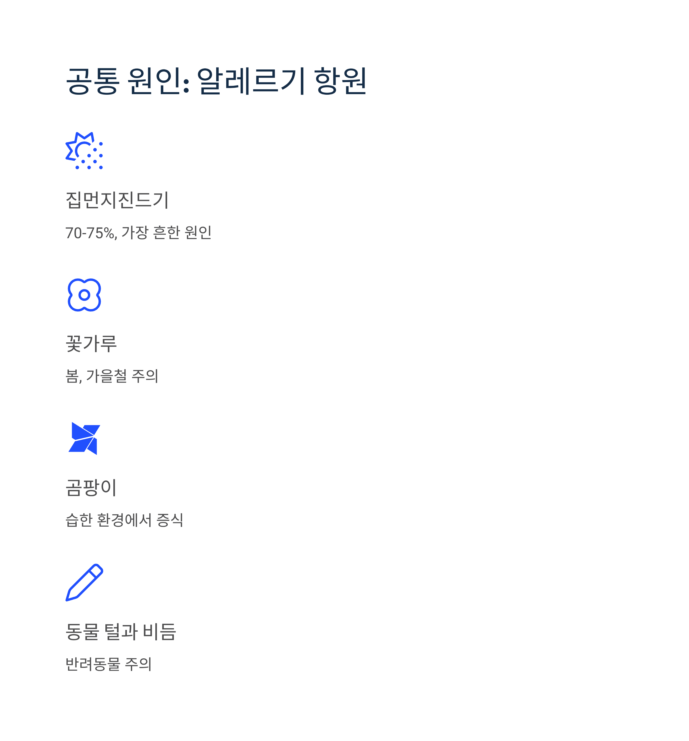 - 집먼지진드기 (70-75%, 가장 흔한 원인)