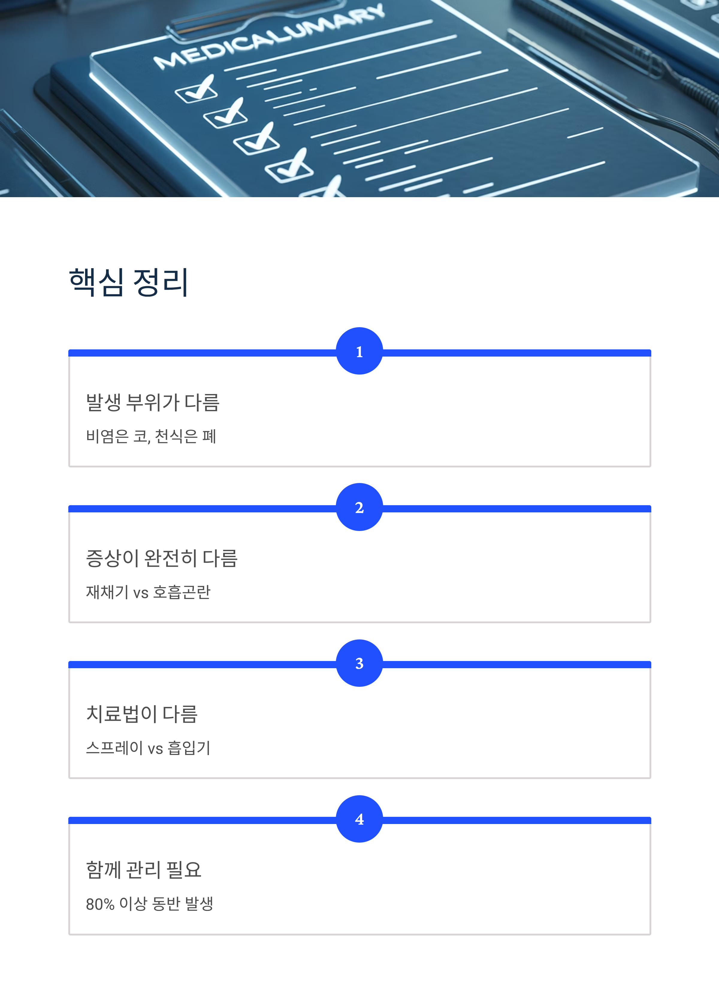 ⚠️ 중요: 이 글은 정보 제공 목적이며, 전문적인 의료 조언을 대체할 수 없습니다. 재채기, 코막힘, 호흡곤란 등의 증상이 지속되면 반드시 이비인후과 또는 호흡기내과 전문의의 진료를 받으시기 바랍니다.