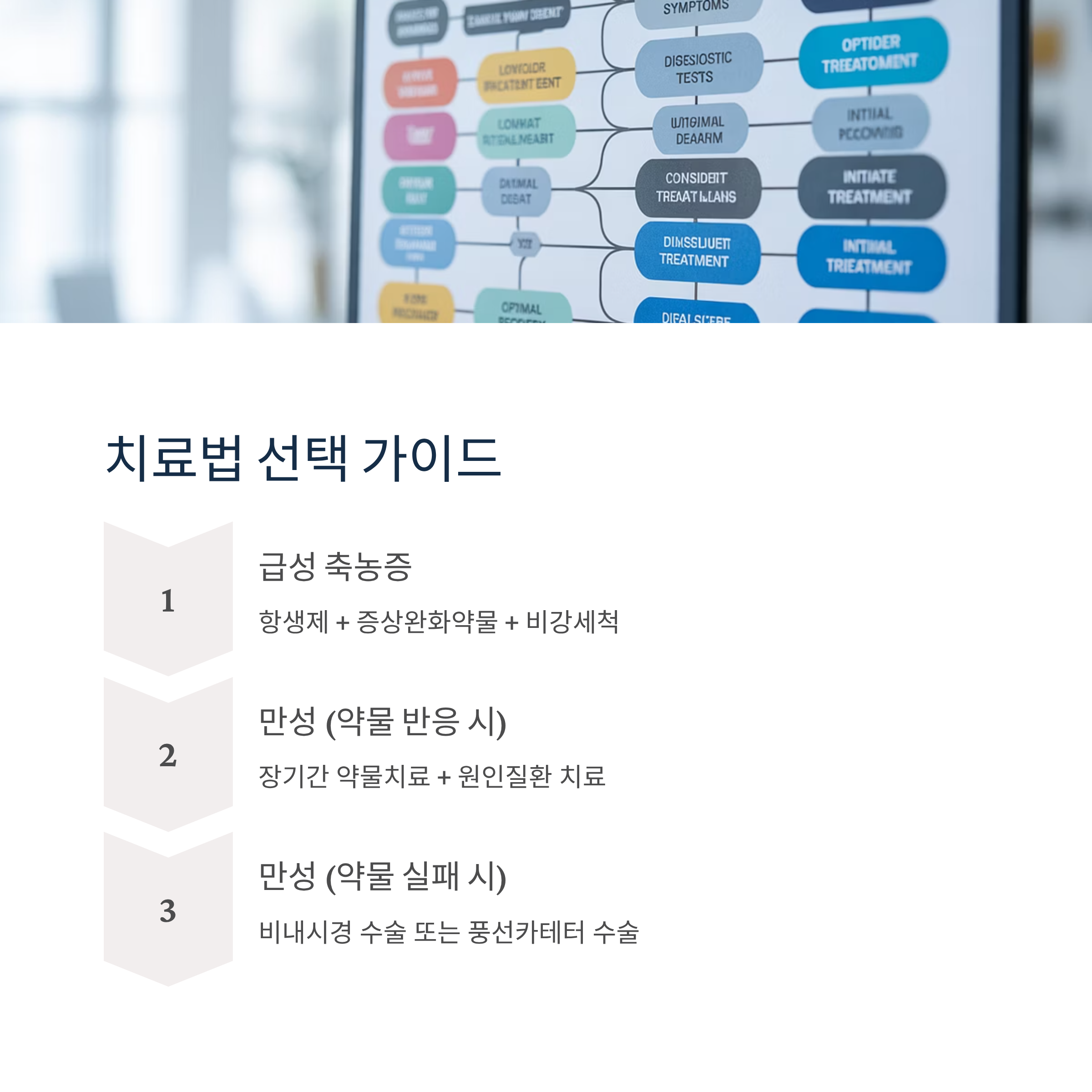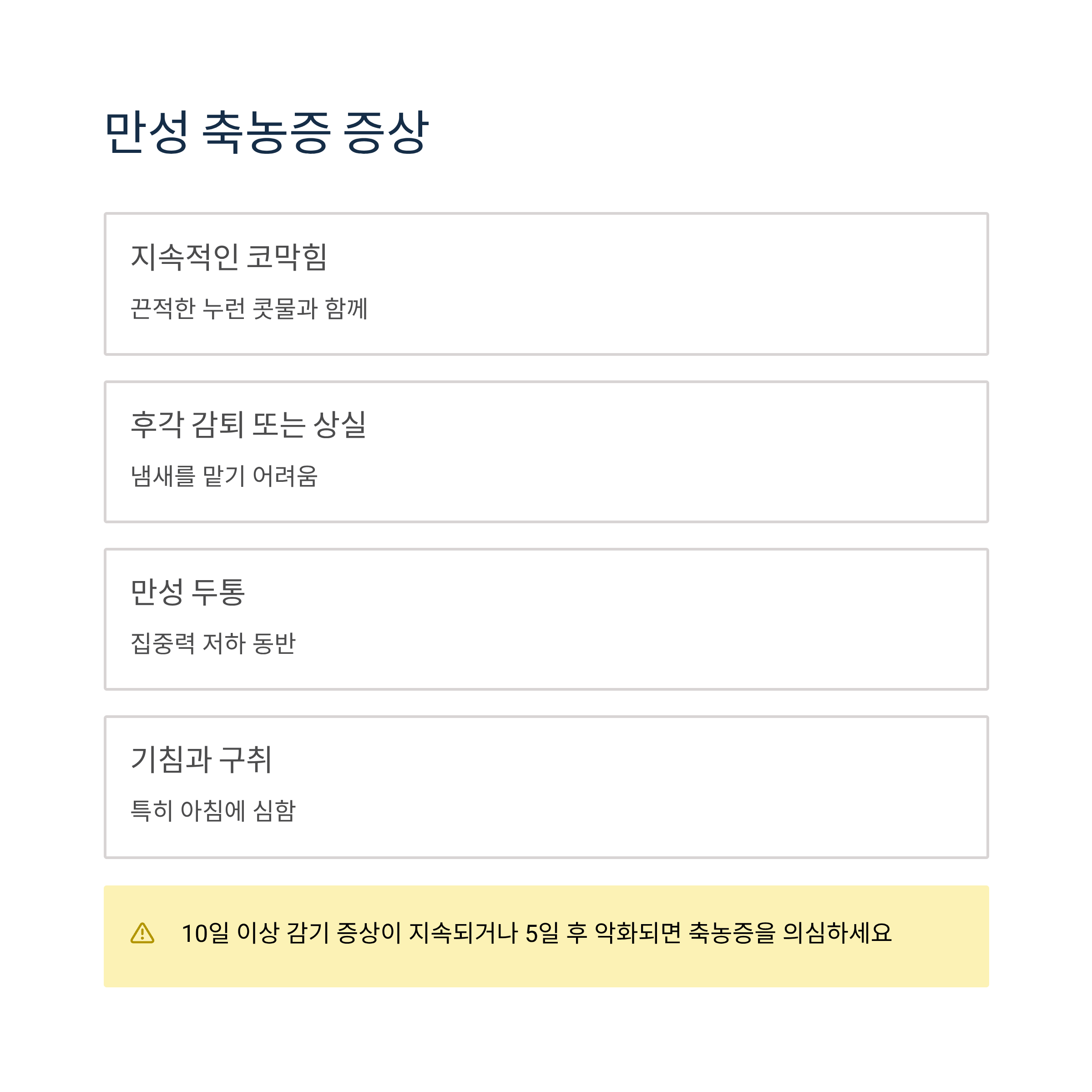 → 항생제 + 증상 완화 약물 + 비강 세척