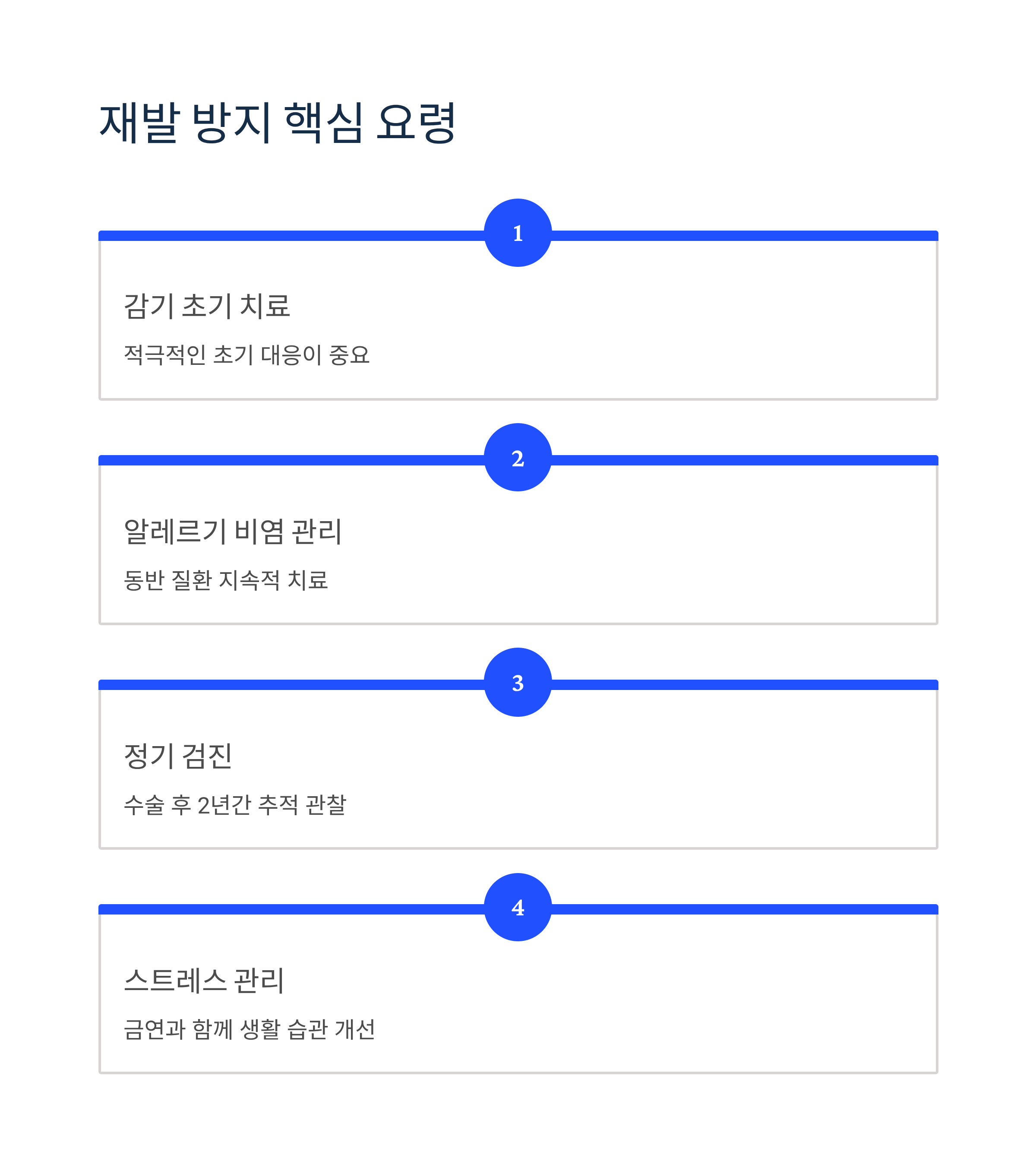 - 정기적인 이비인후과 검진 (수술 후 2년간)