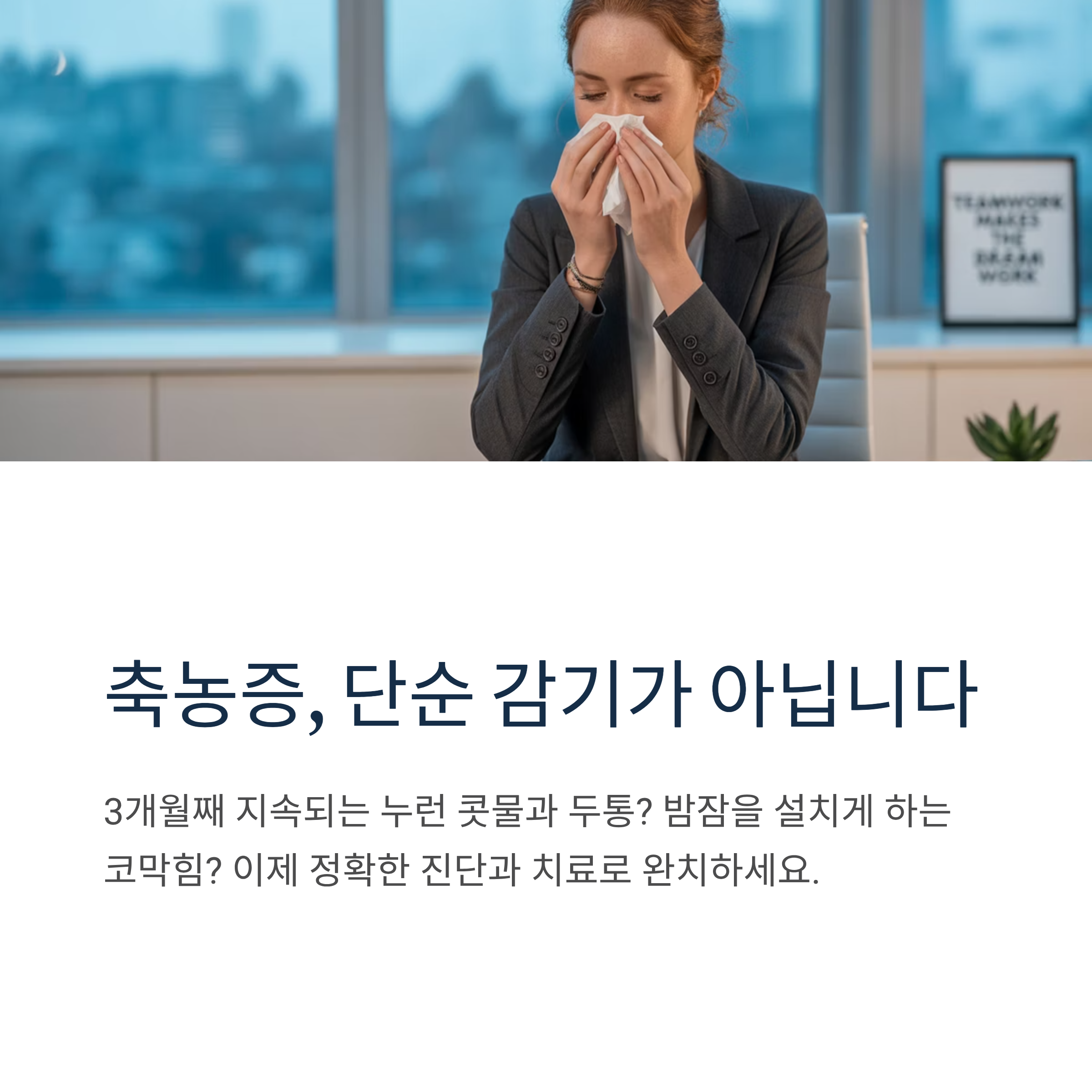 결론적으로, 축농증은 조기 진단과 적절한 치료가 핵심입니다. 단순 감기로 여겨 방치하면 만성화되어 삶의 질이 크게 저하될 수 있으므로, 증상이 10일 이상 지속되면 반드시 이비인후과 전문의 진료를 받으시기 바랍니다. 최신 치료법인 풍선카테터 수술까지 다양한 옵션이 있으니, 개인의 상태에 맞는 최적의 치료법을 선택하여 건강한 일상을 되찾으시길 바랍니다.