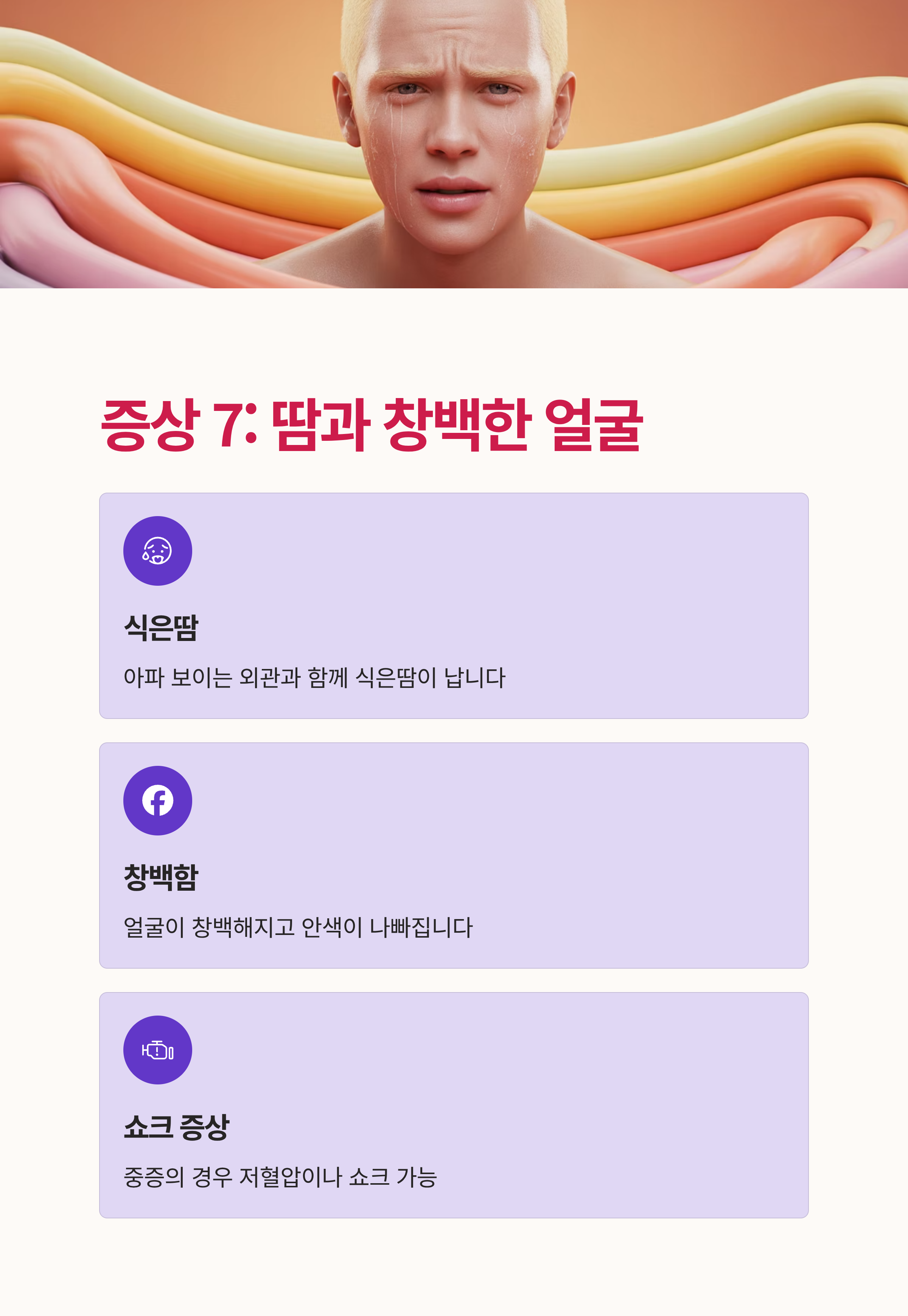 7. 땀과 창백한 얼굴