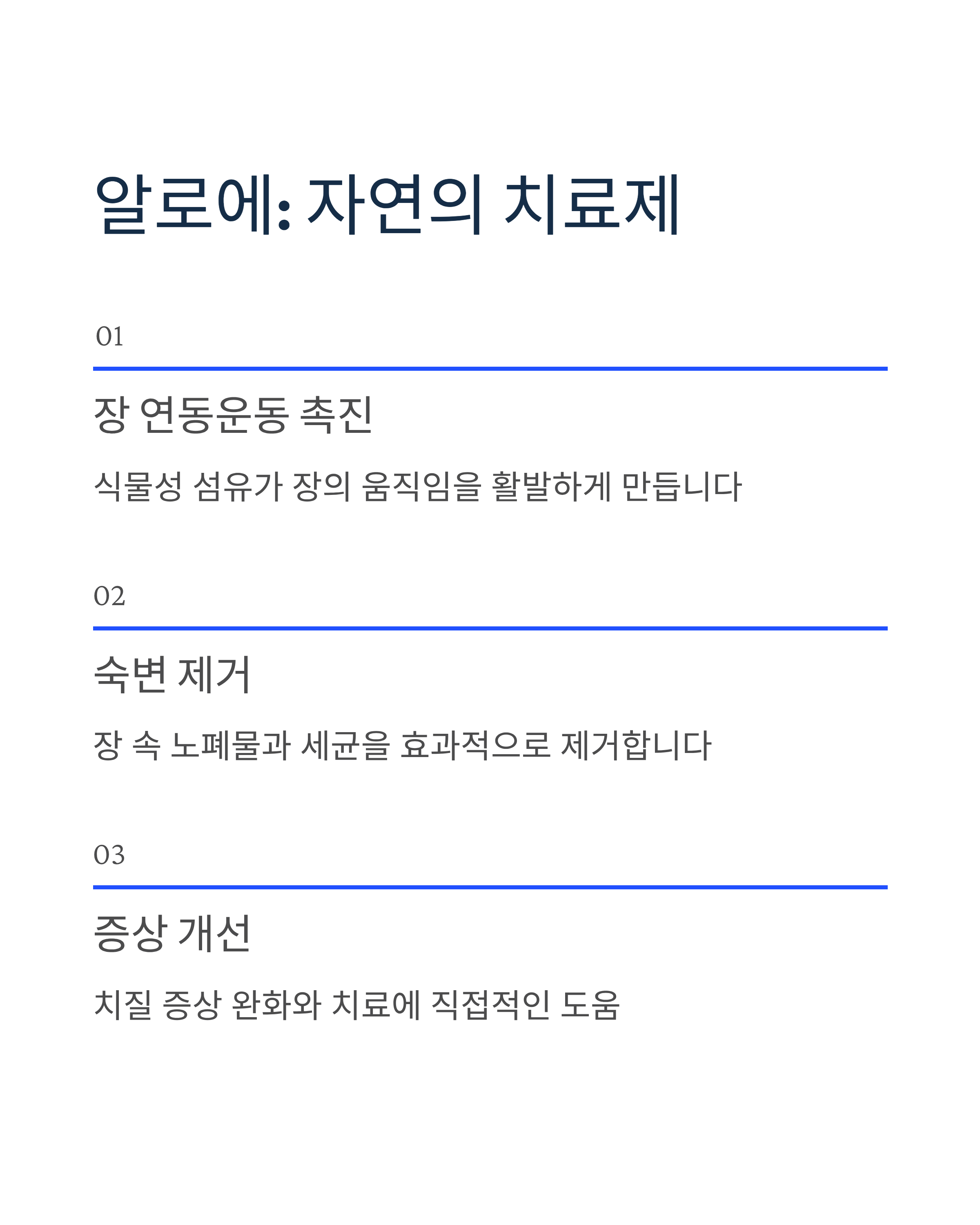 식물성 식이섬유는 장내에서 수분을 흡수해 장운동을 촉진해 대변의 양을 늘리거나 부드럽게 해 변비를 예방하고 치열이나 치핵과 같은 치질 질환 예방에도 도움이 됩니다.