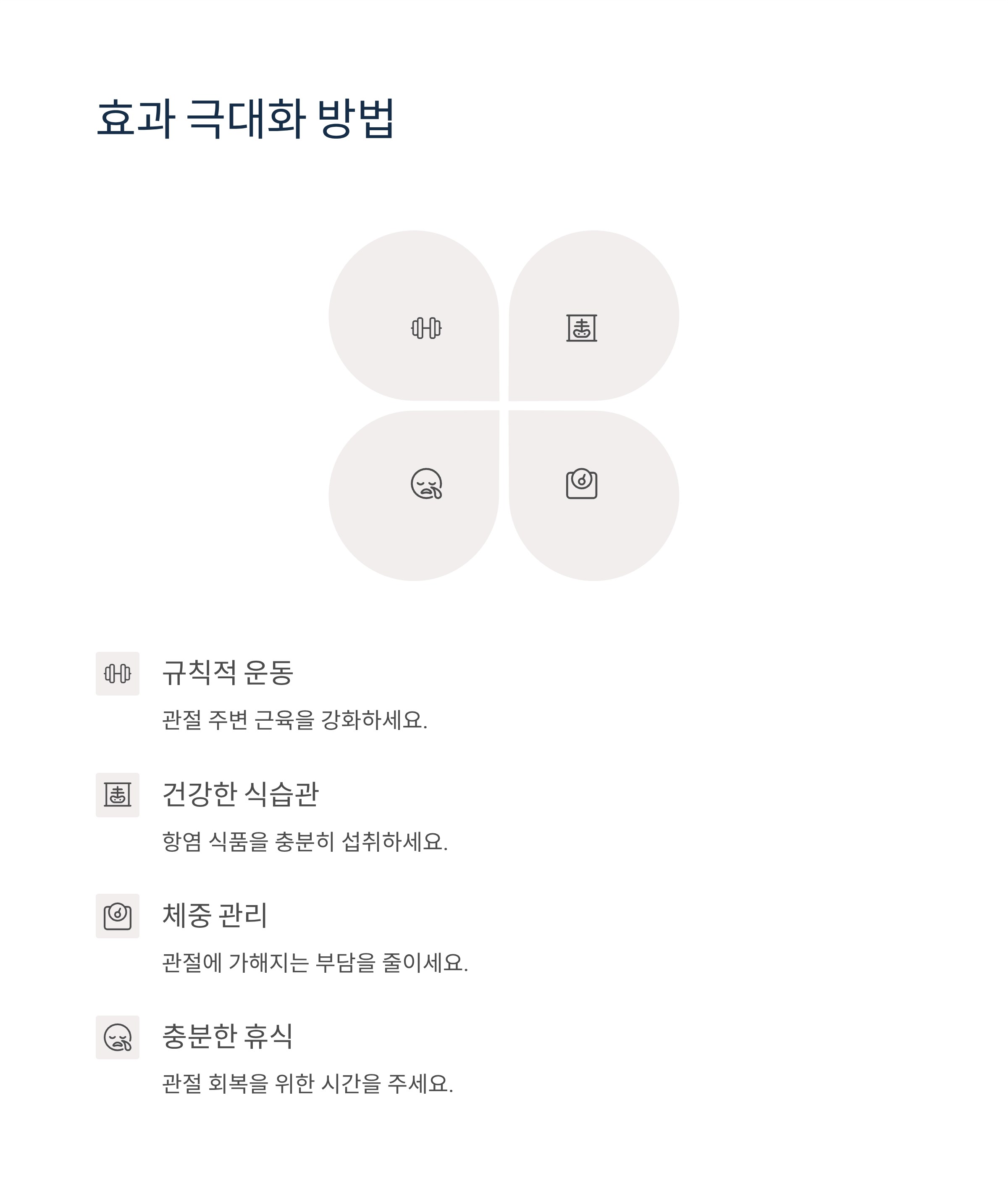 관절 내 활액의 점도를 높여 관절 사이 움직임을 부드럽게 만들어줍니다.
