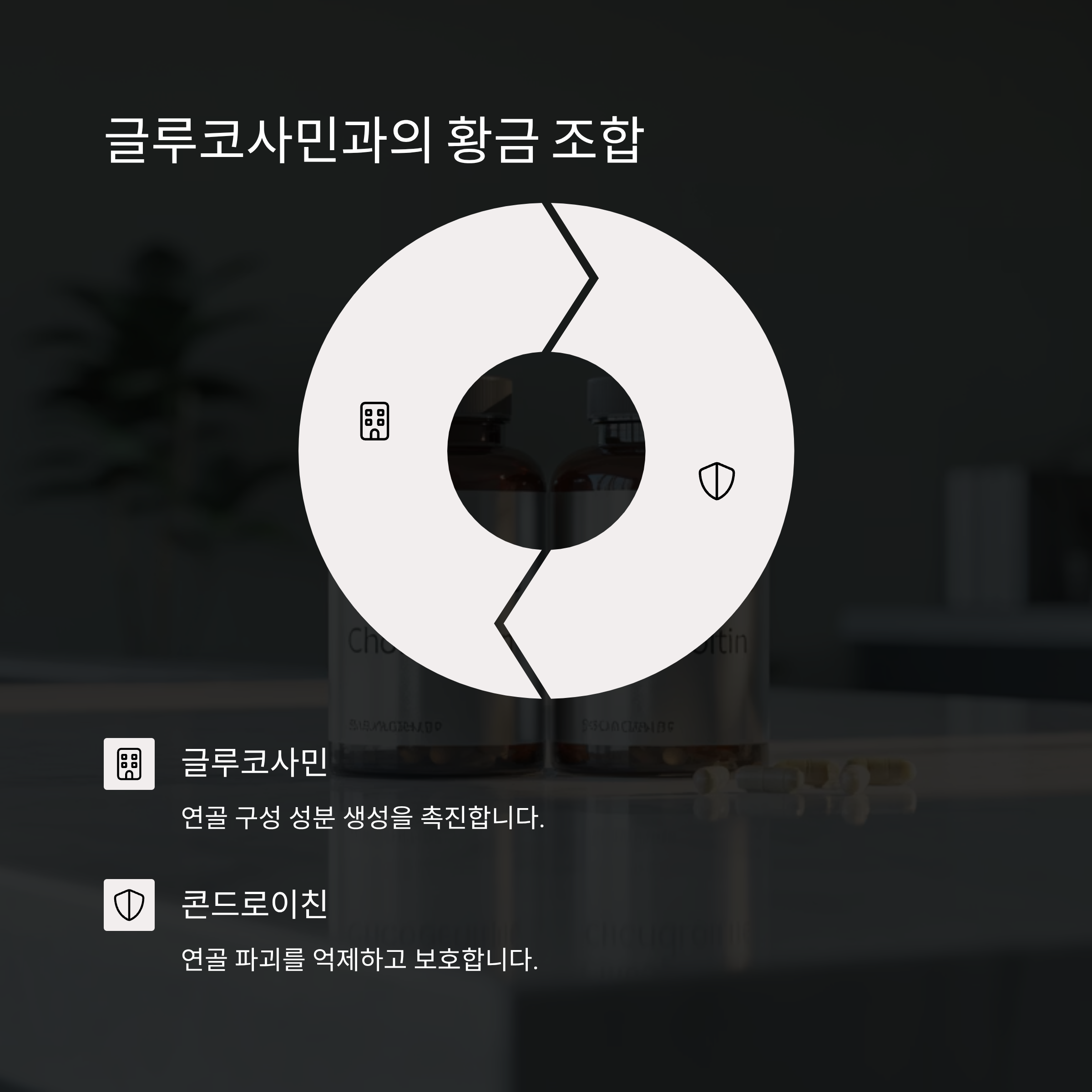 콘드로이친은 연골 조직의 수분을 유지하고 충격을 흡수하는 역할을 합니다.