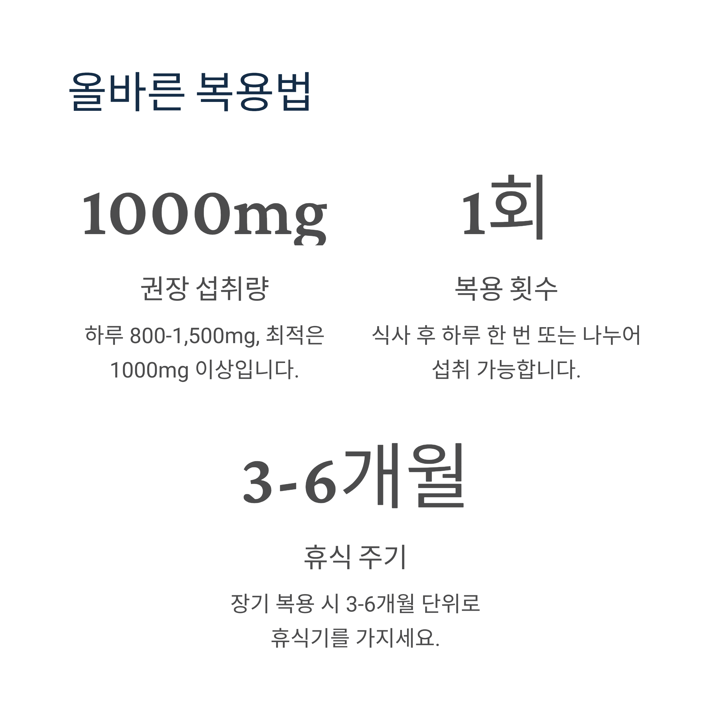 지속 기간: 장기적으로 복용해도 비교적 안전하지만, 3~6개월 단위로 휴식기를 가지는 것이 좋습니다.