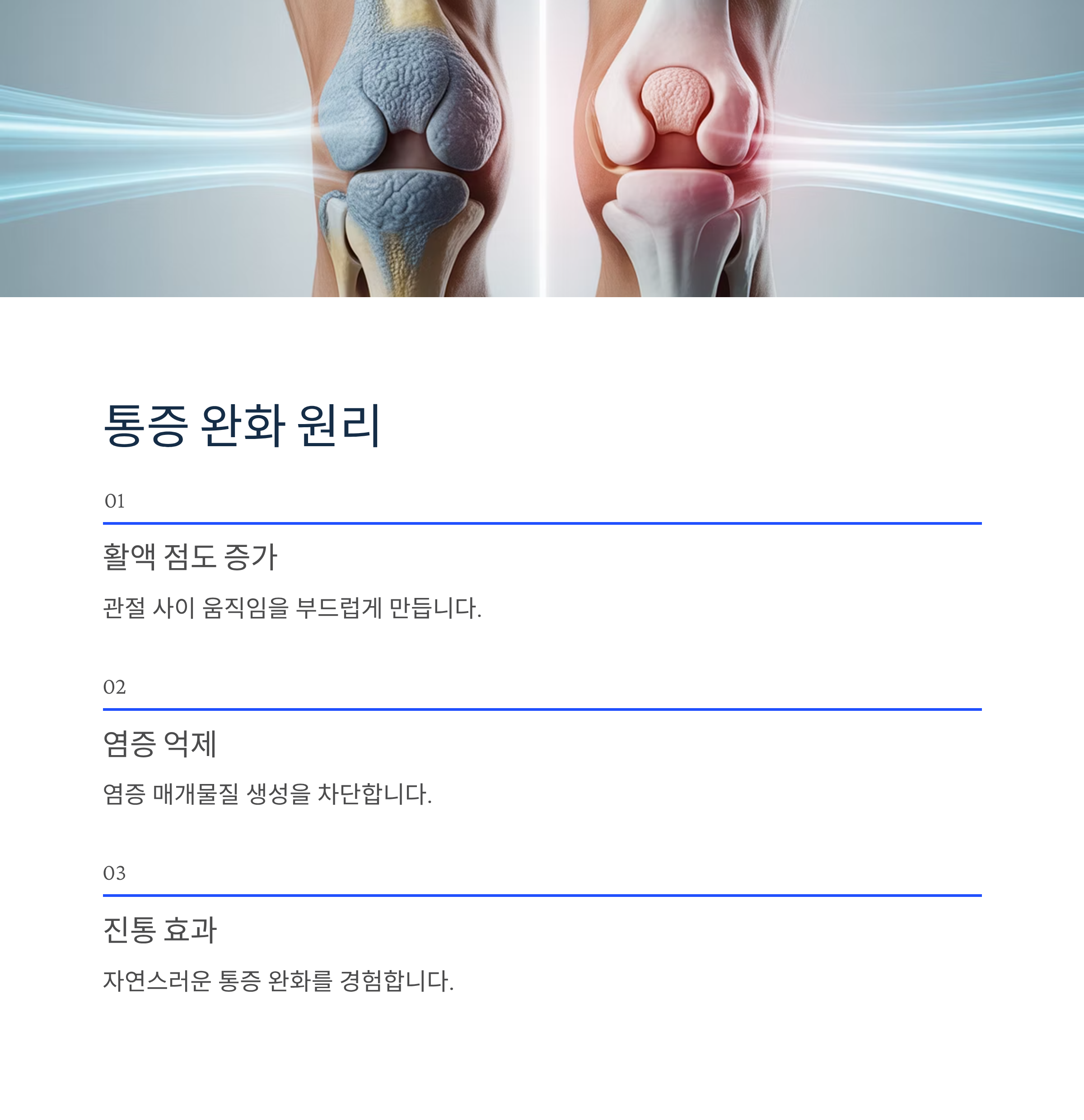 관절액을 보충하여 관절이 원활하게 움직이도록 돕습니다.