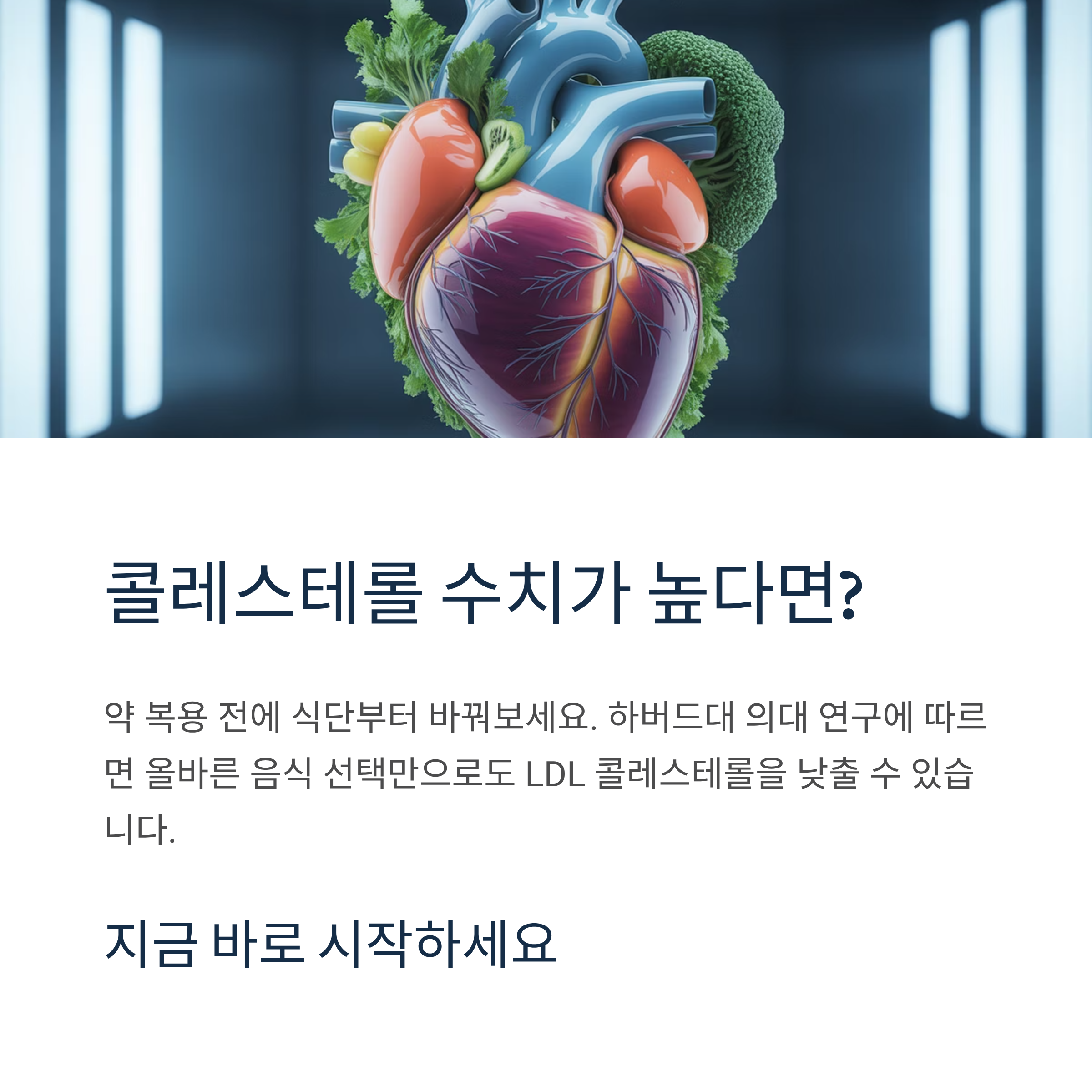 "혈관이 막히기 전에!" 서구화된 식습관으로 혈중 나쁜 콜레스테롤이 증가하면서 동맥경화, 심근경색 같은 심혈관 질환 위험이 높아지고 있습니다. 혈관 건강을 지키는 가장 쉬운 방법은 매일