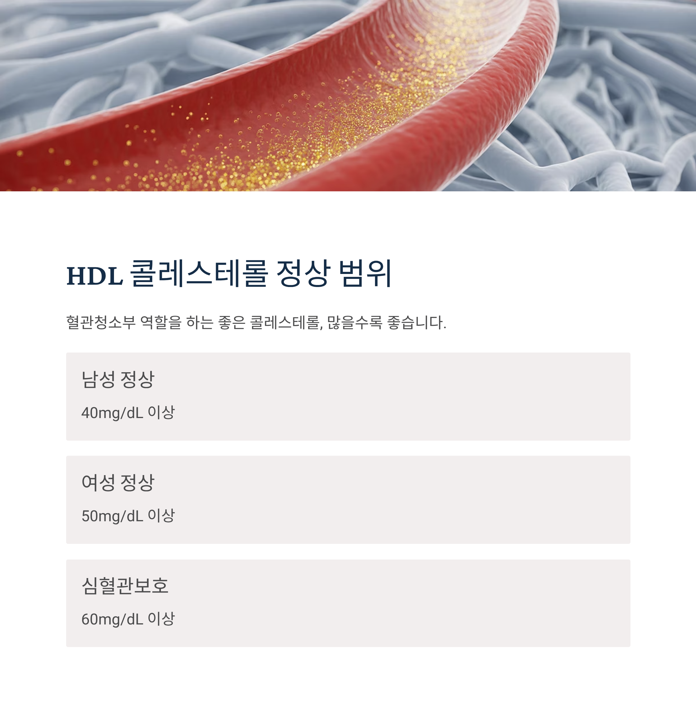 HDL 콜레스테롤 정상 수치 (좋은 콜레스테롤)