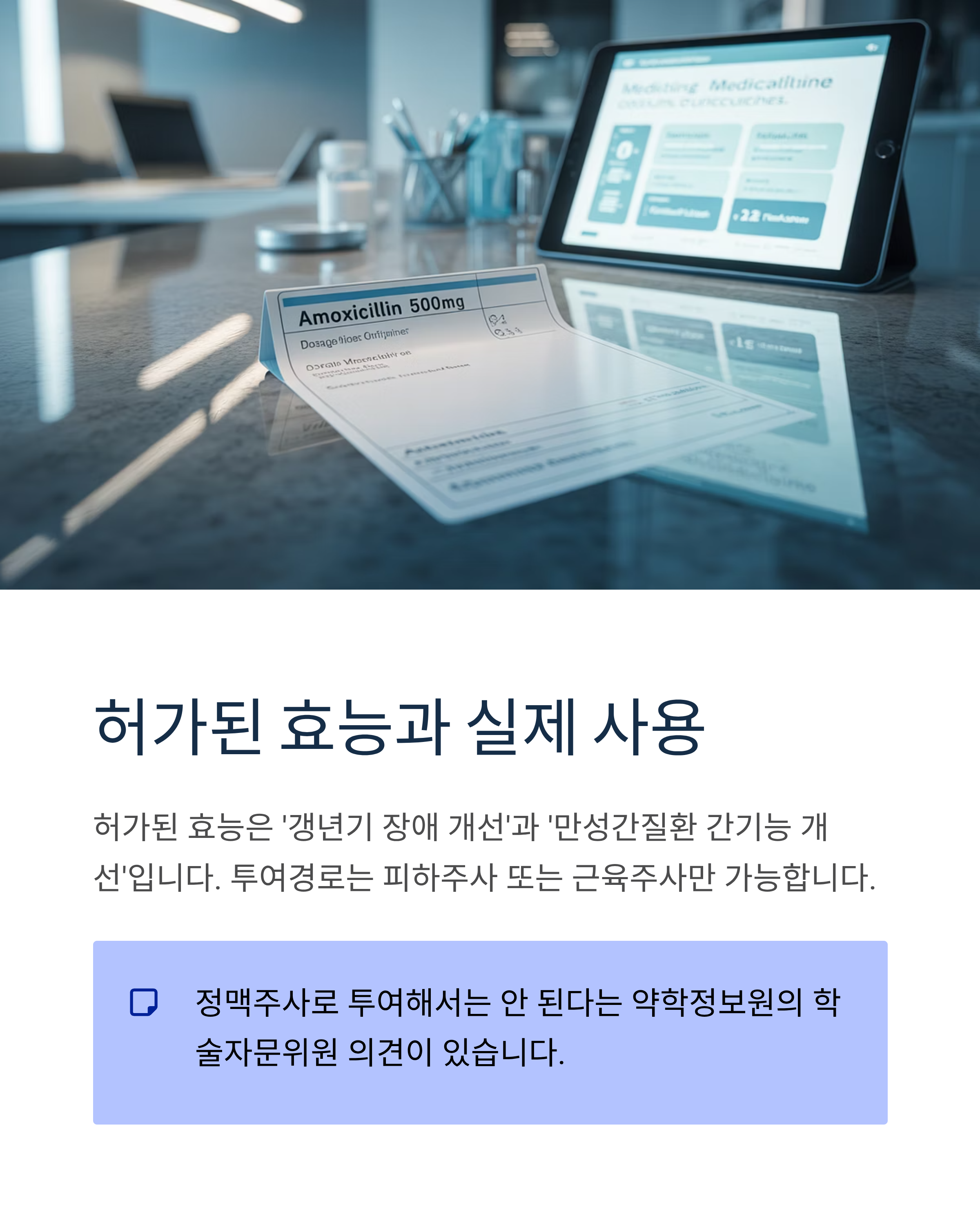 미용 목적이 아닌 갱년기 장애나 간기능 개선 목적으로 처방받는 것이 안전합니다.