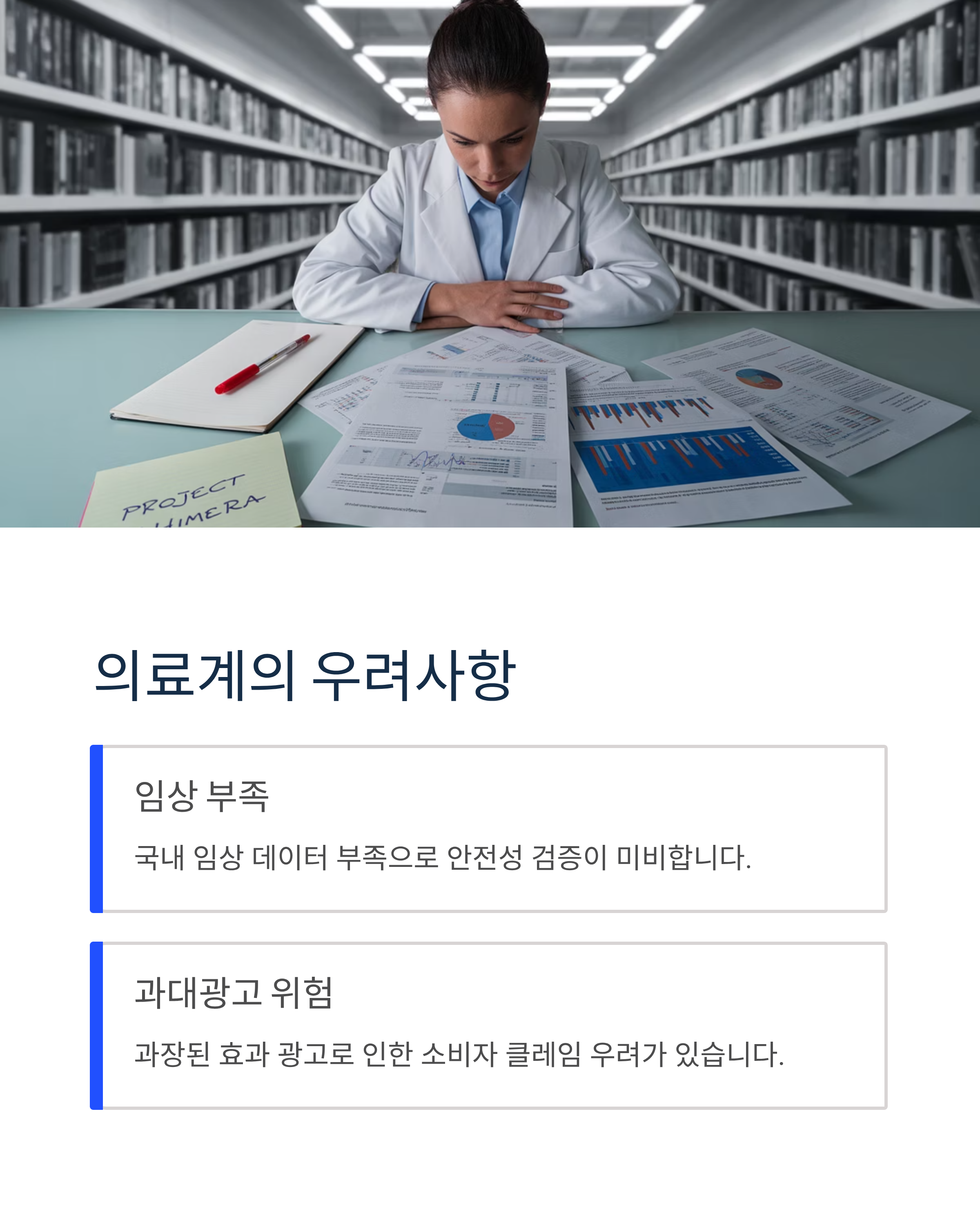 의료계 일각서 제기되는 태반주사제 관련 문제점들은 국내 임상의 부족과 이로인한 안정성 및 효과에 대한 검증의 미비, 그리고 자칫 과대·과장 광고로 인해 소비자 클레임이 제기될 수 있다는 점 등입니다.
