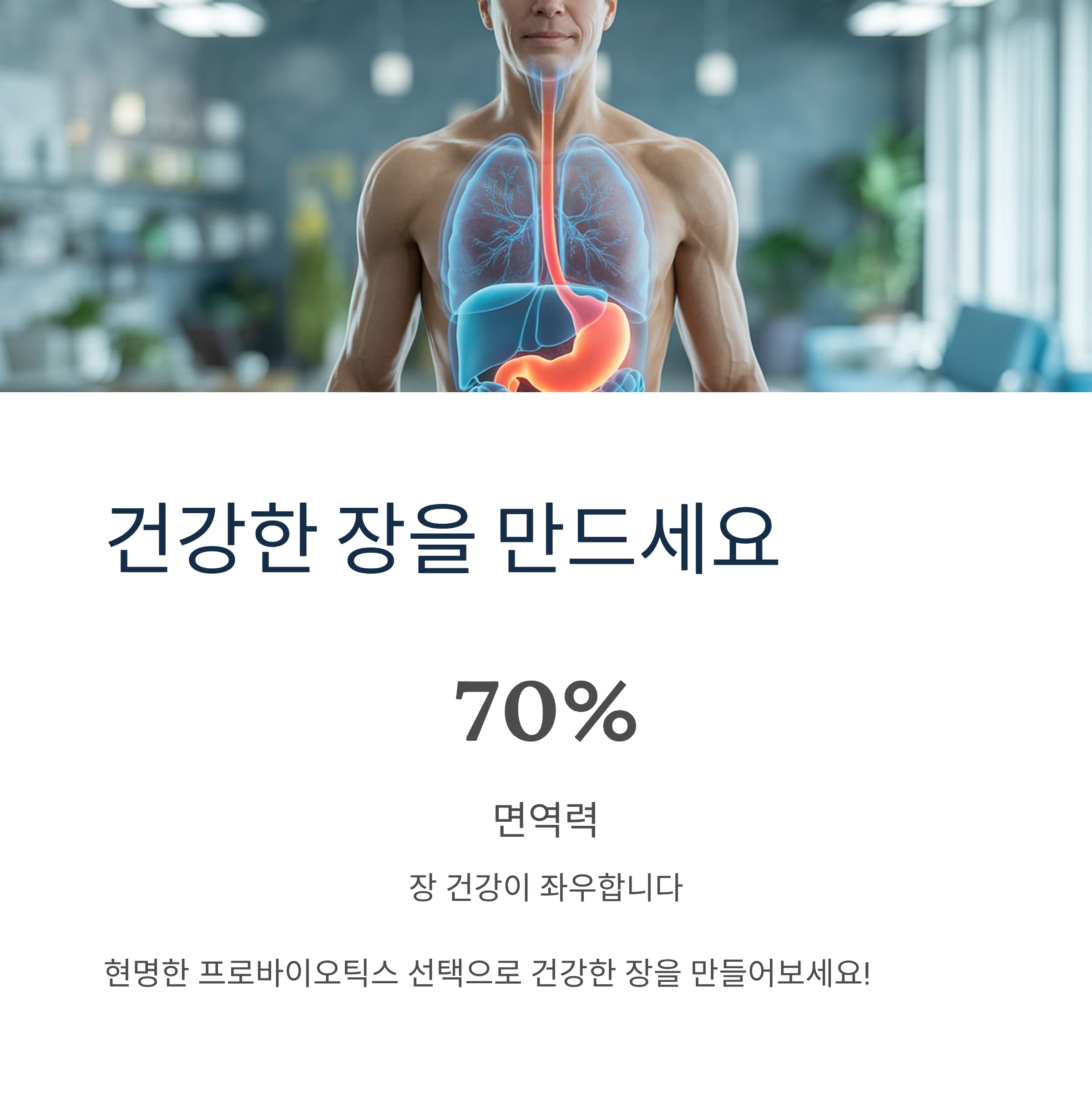 장 건강은 면역력의 70%를 좌우합니다. 현명한 프로바이오틱스 선택으로 건강한 장을 만들어보세요.