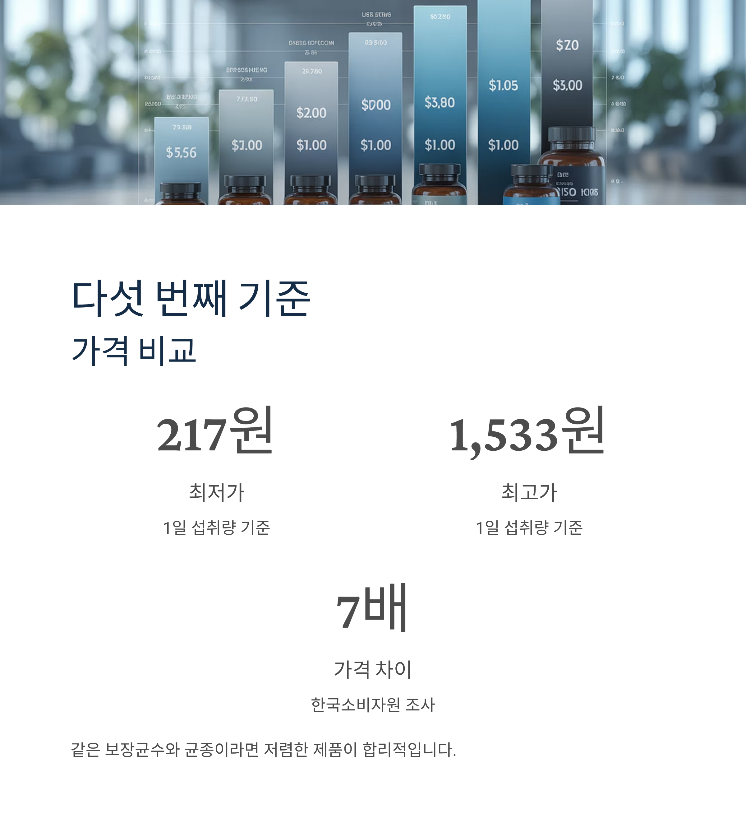 한국소비자원 조사 결과, 프로바이오틱스 제품의 1일 섭취량 기준 가격은 217원에서 1,533원으로 최대 7배 이상 차이를 보였습니다.