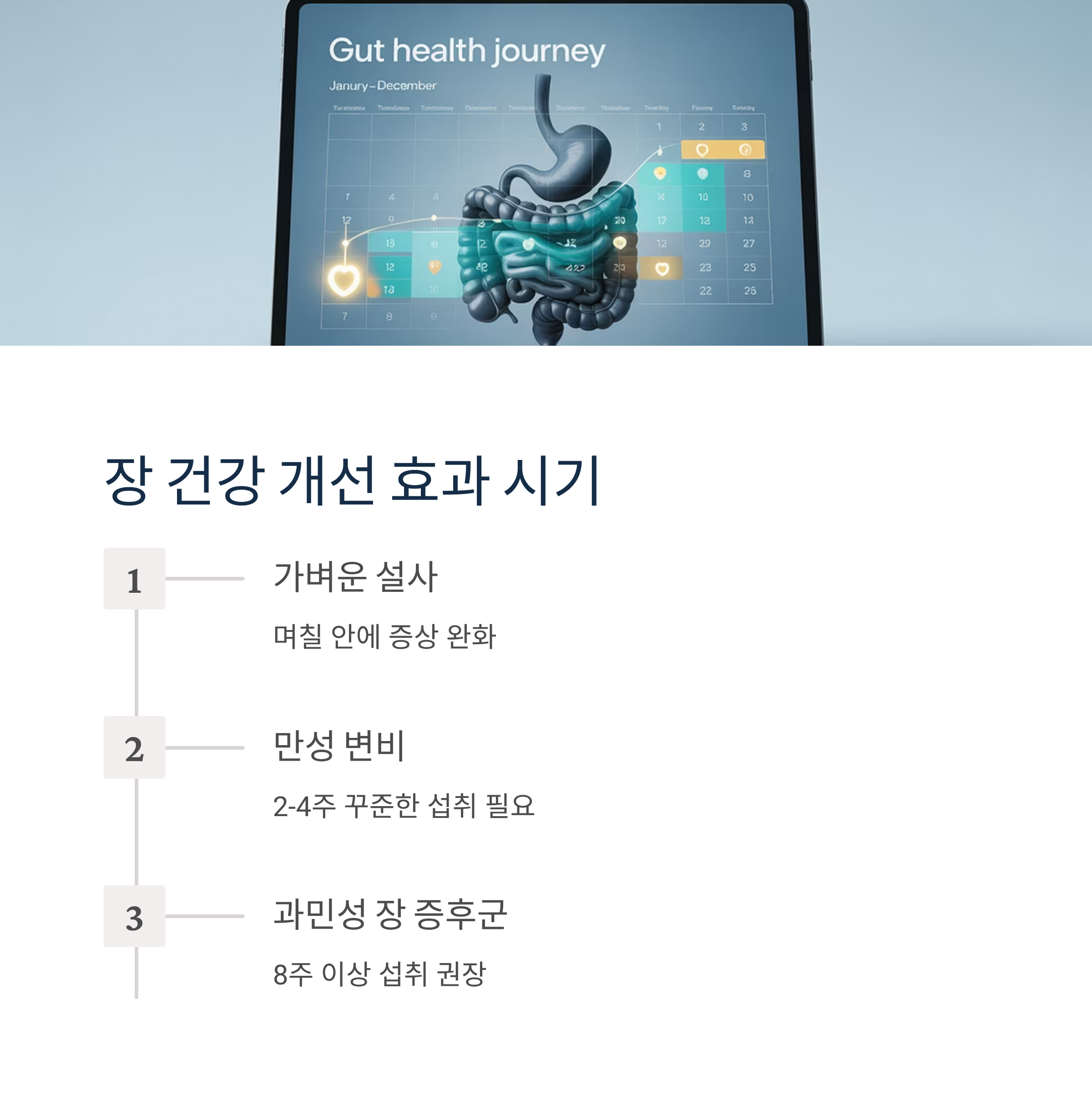 • 만성 변비: 2-4주 꾸준한 섭취 필요