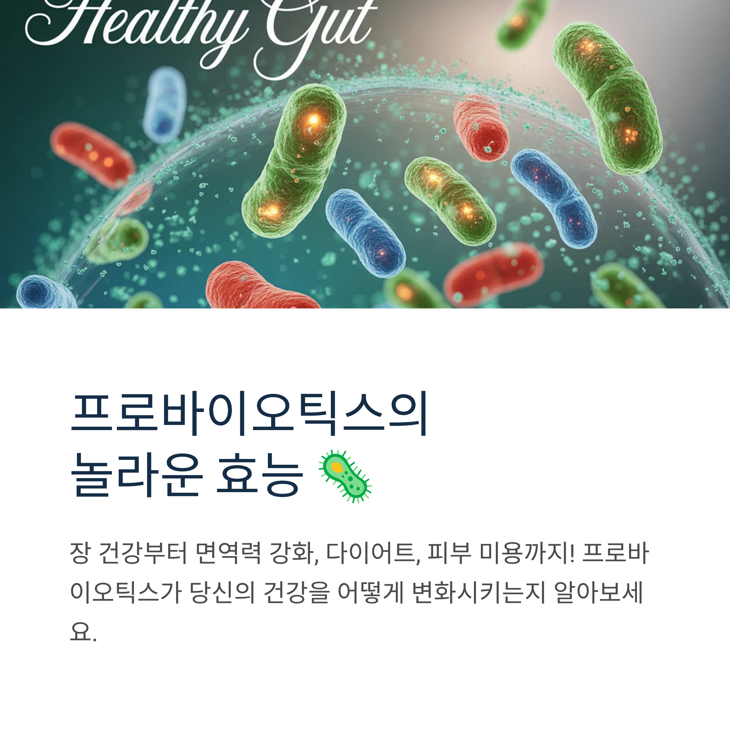 프로바이오틱스 효능을 완벽히 이해하여 장 건강부터 면역력 강화, 다이어트까지 다양한 건강 혜택을 누려보세요.