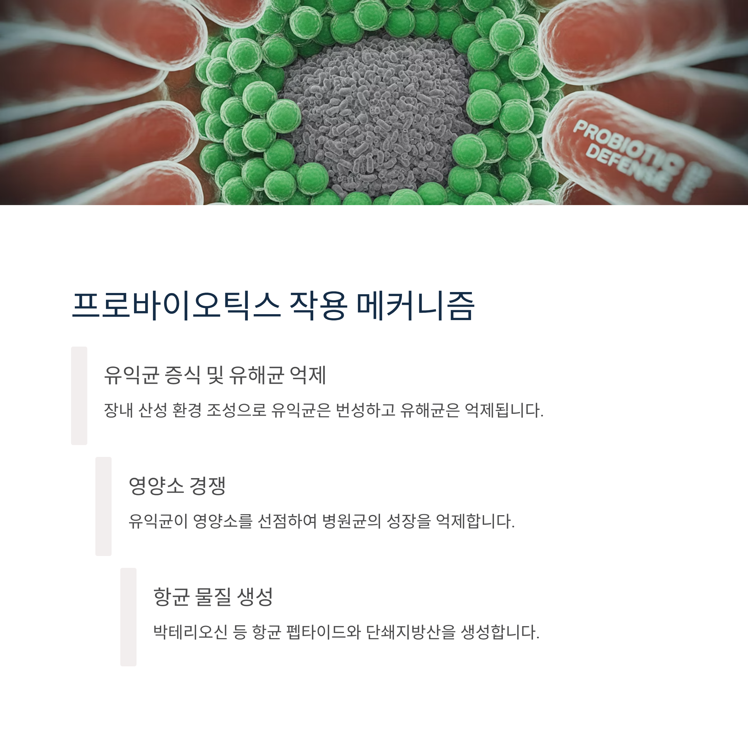 프로바이오틱스 효능이 발휘되는 세 가지 주요 메커니즘을 알아보겠습니다.