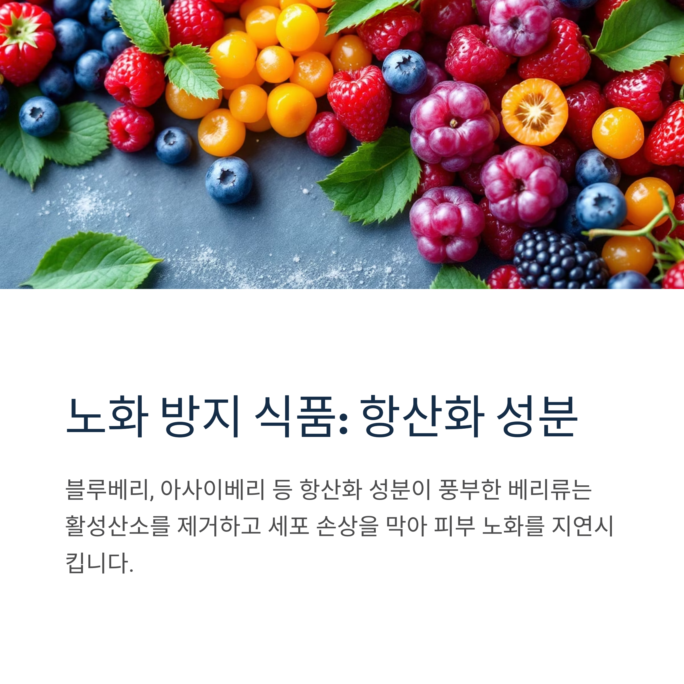 - 항산화 성분이 풍부한 베리류: 블루베리, 아사이베리