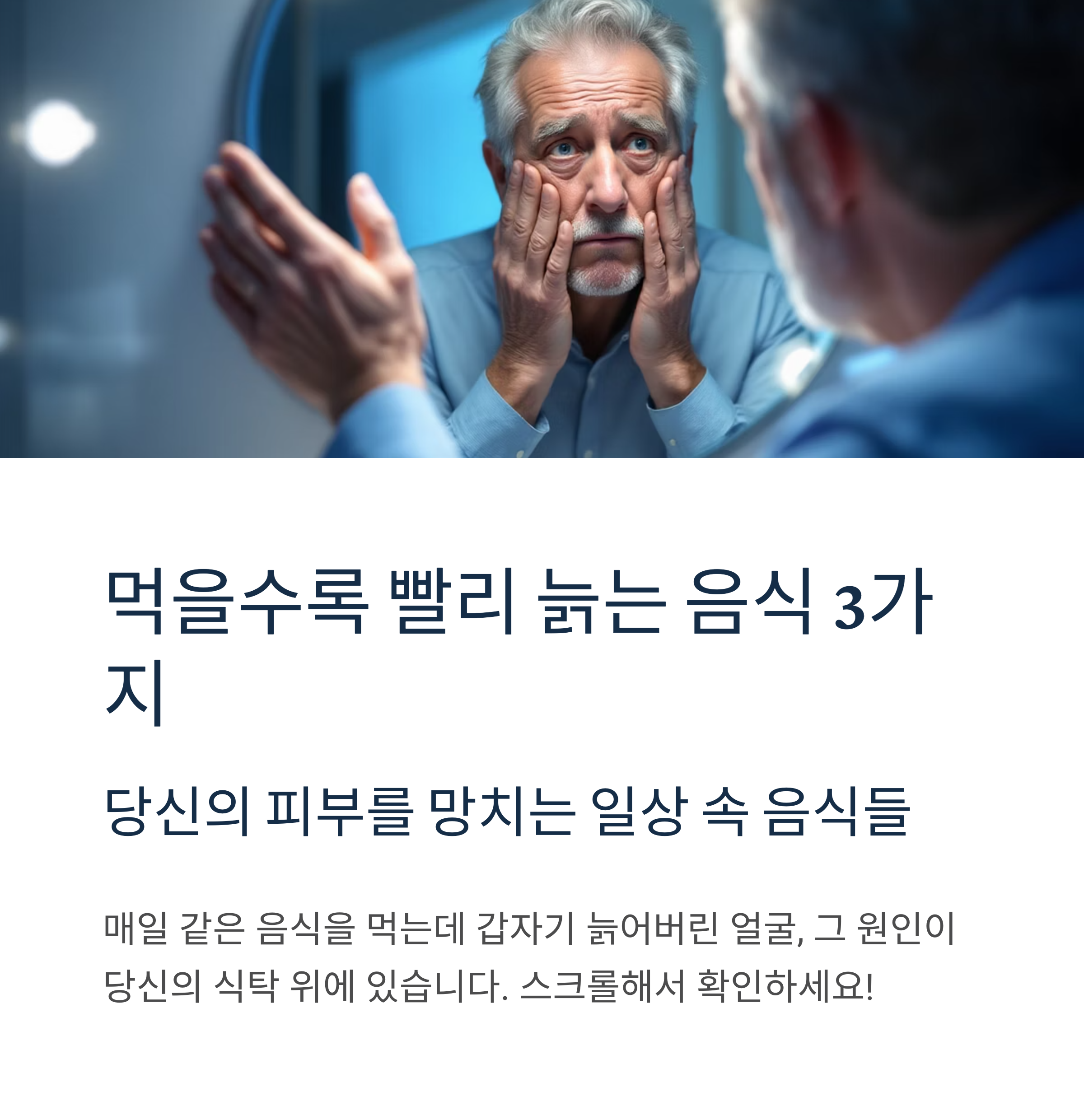 매일 같은 음식을 먹고 있는데 어느 순간 거울을 보면 예전 같지 않은 피부와 얼굴을 발견하게 됩니다. 혹시 무심코 먹고 있는 음식이 당신을 빠르게 늙게 만들고 있는 것은 아닐까요?