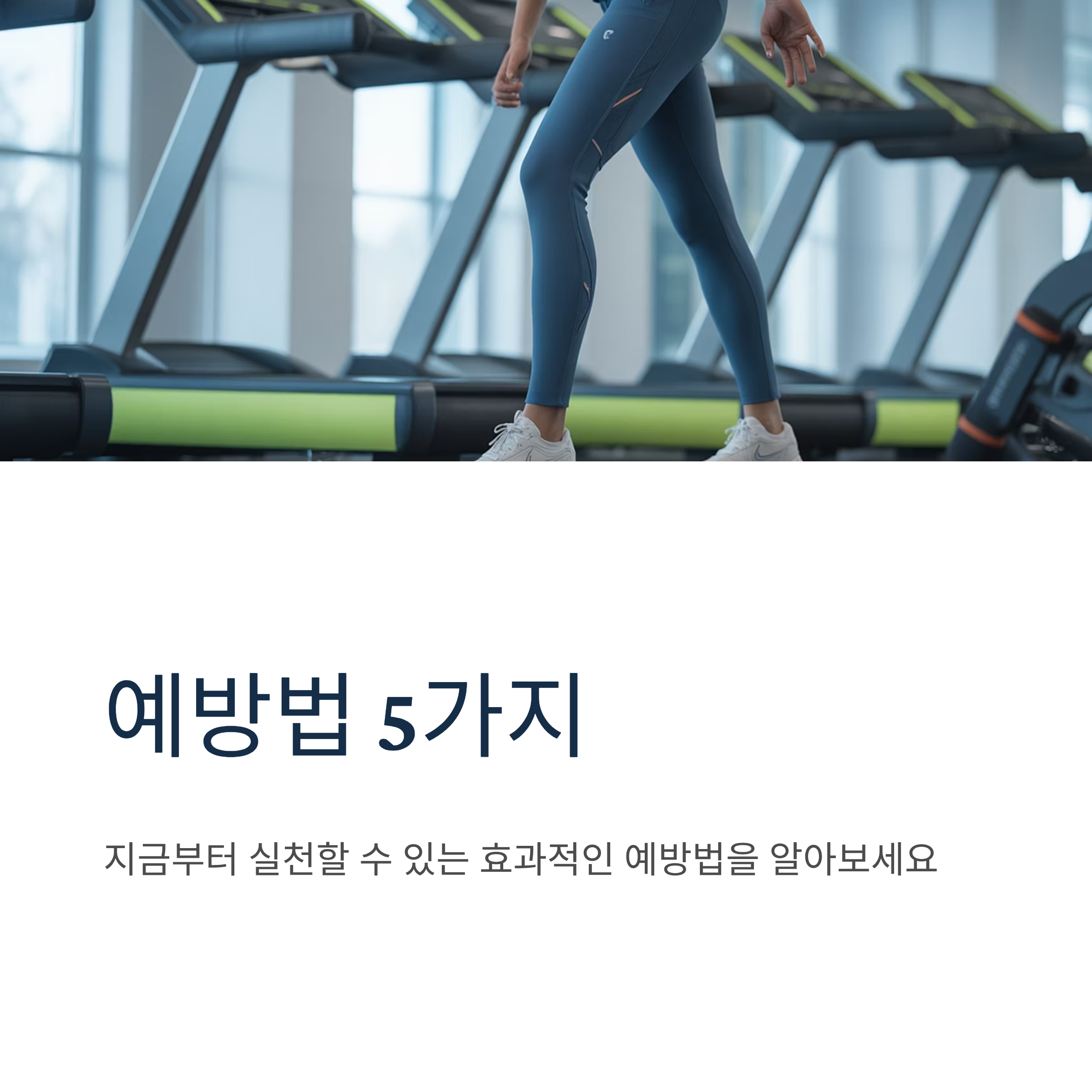 피해야 할 운동: 등산, 줄넘기, 농구 같이 다리에 무리를 주는 운동은 피하세요. 수영은 중력과 무관하여 좋습니다.
