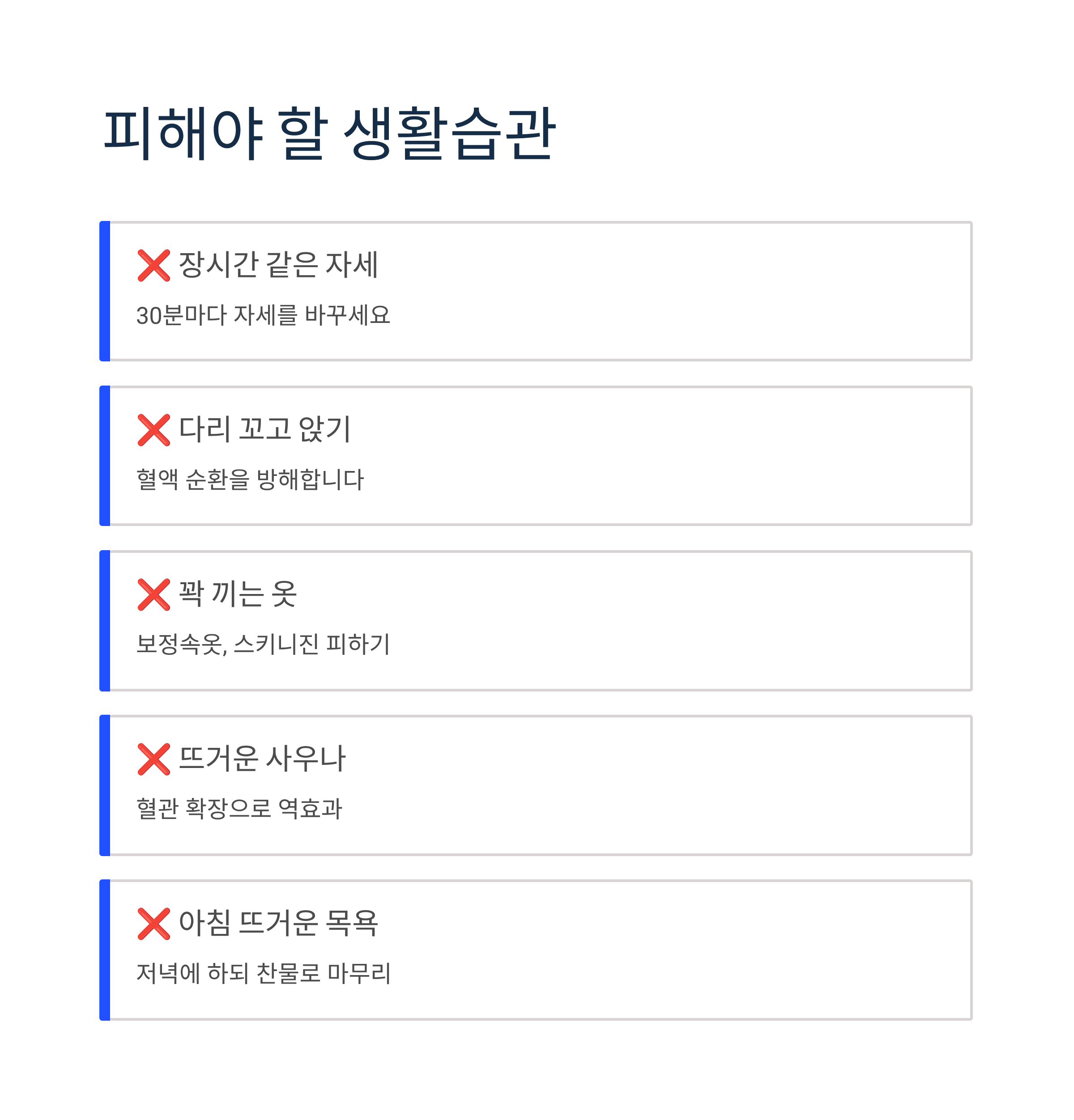 - 뜨거운 사우나나 족욕 (혈관 확장으로 역효과)