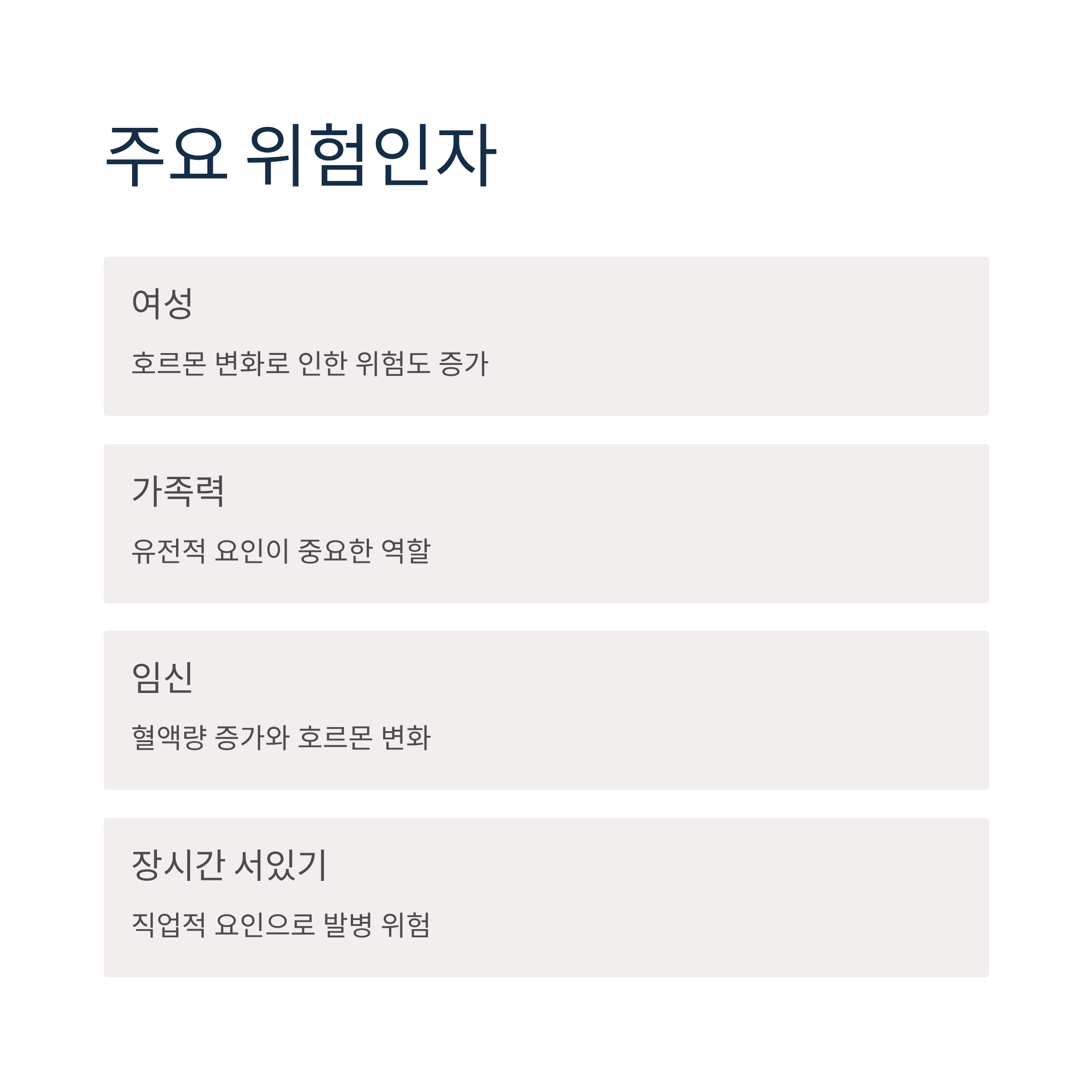 하지정맥류는 다리 정맥 내부의 판막이 손상되어 발생합니다. 혈액이 심장으로 가는 것이 역류하면 정맥이 늘어나 피부에서 두드러지게 보이게 됩니다. 하지정맥류의 주요 원인은 정맥부전으로, 여성, 비만, 가족력, 고령, 임신, 장시간 서 있는 직업 등이 위험인자입니다.