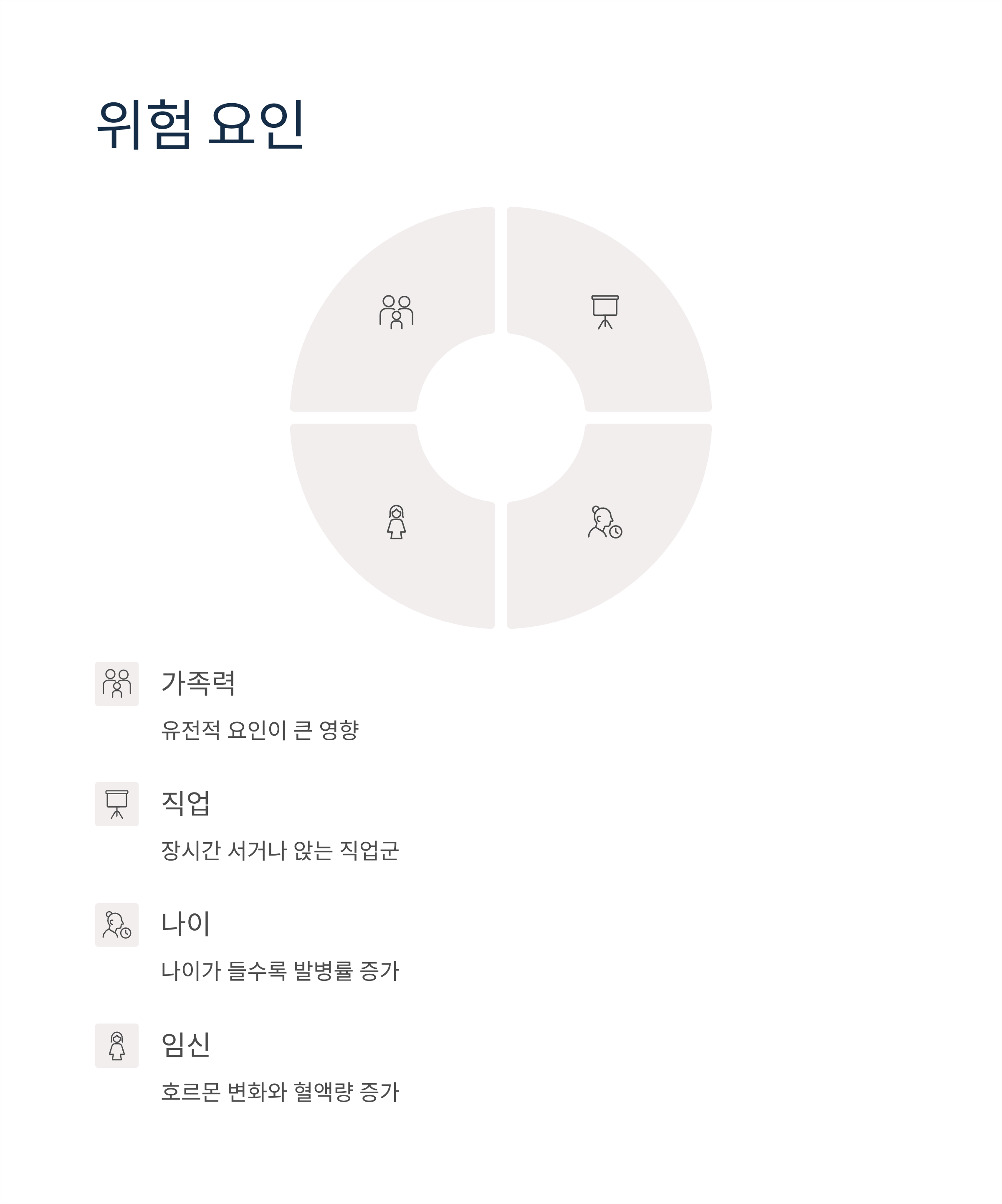 - 장시간 서 있거나 앉아 있는 직업을 가지고 있다
