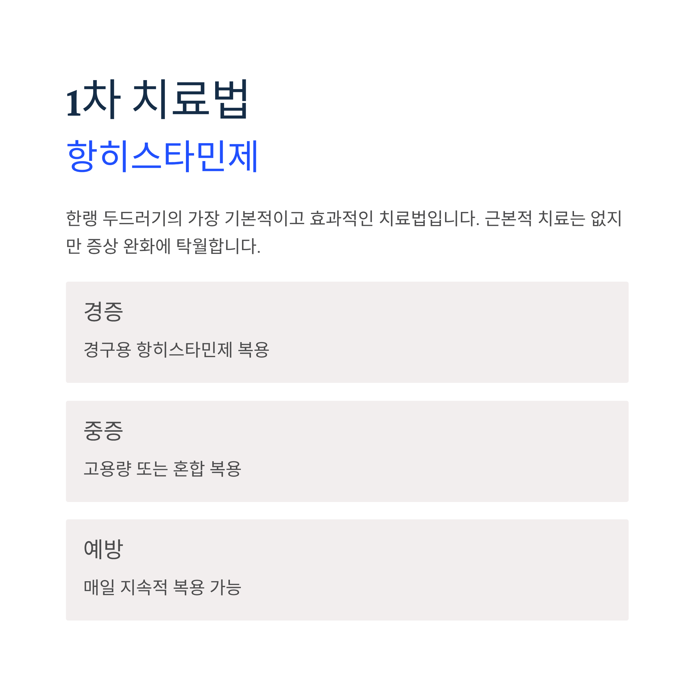 1. 항히스타민제 치료 (1차 치료)