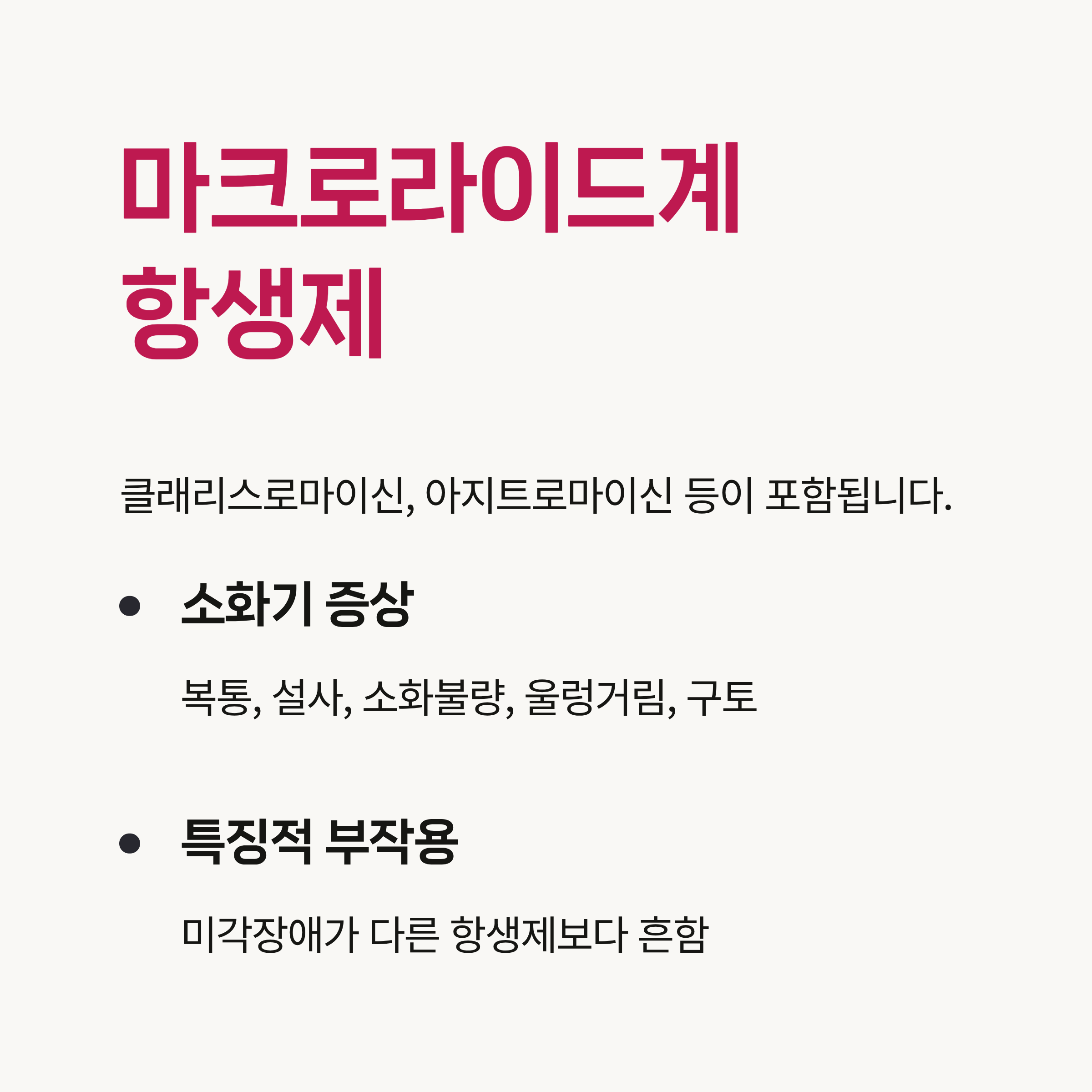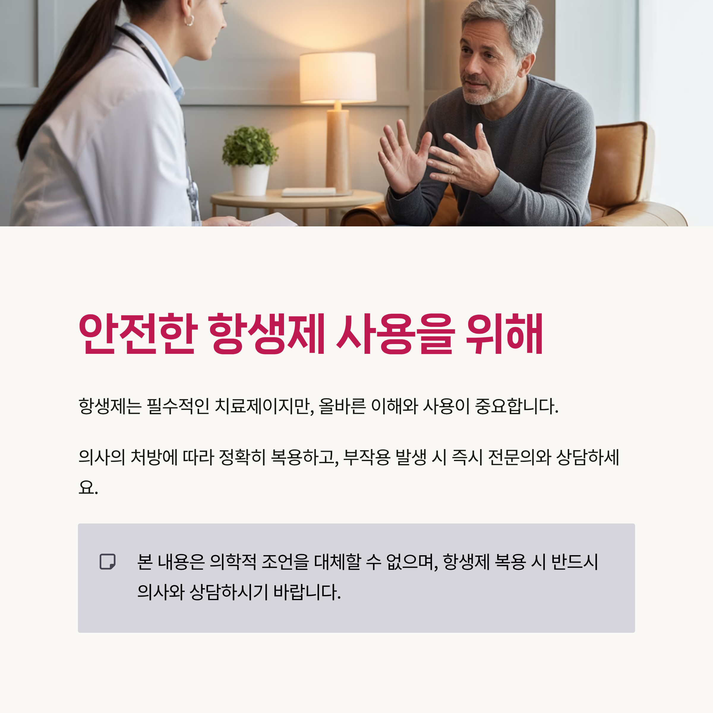 본 내용은 의학적 조언을 대체할 수 없으며, 항생제 복용 시 반드시 의사와 상담하시기 바랍니다.