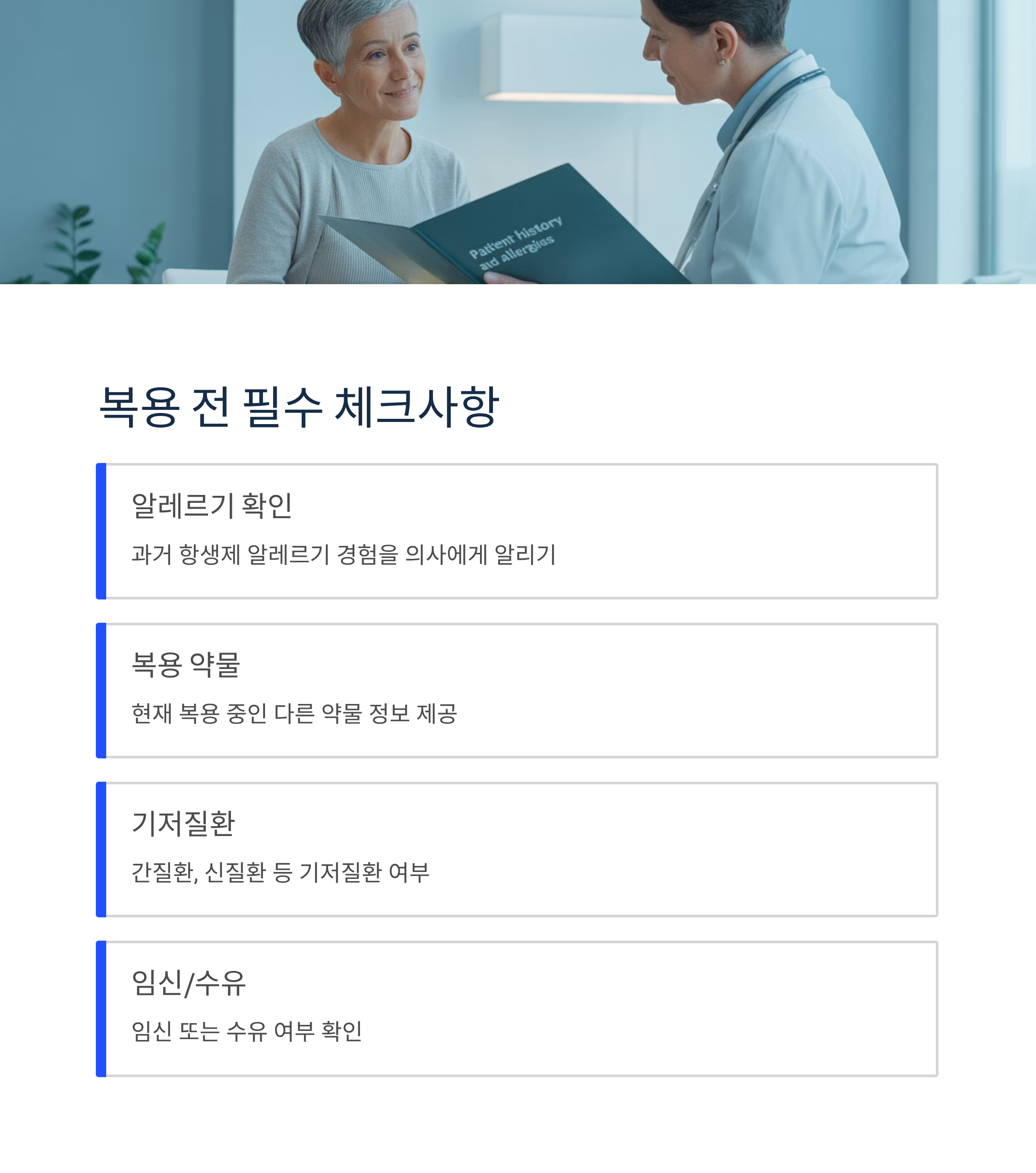 본 내용은 의학적 조언을 대체할 수 없으며, 항생제 복용 시 반드시 의사와 상담하시기 바랍니다.