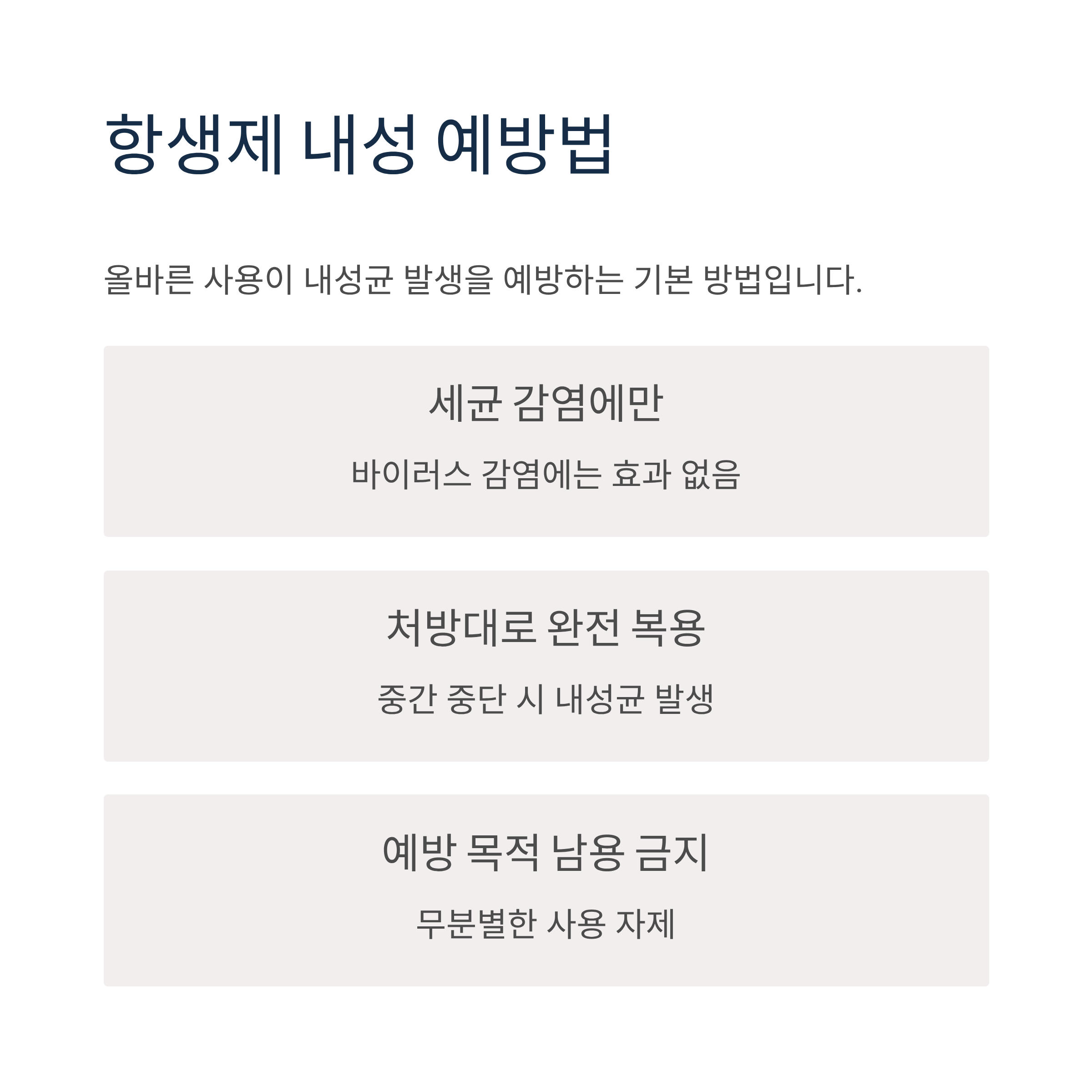 - 예방 목적 남용 금지: 감염 예방을 위한 무분별한 사용 자제