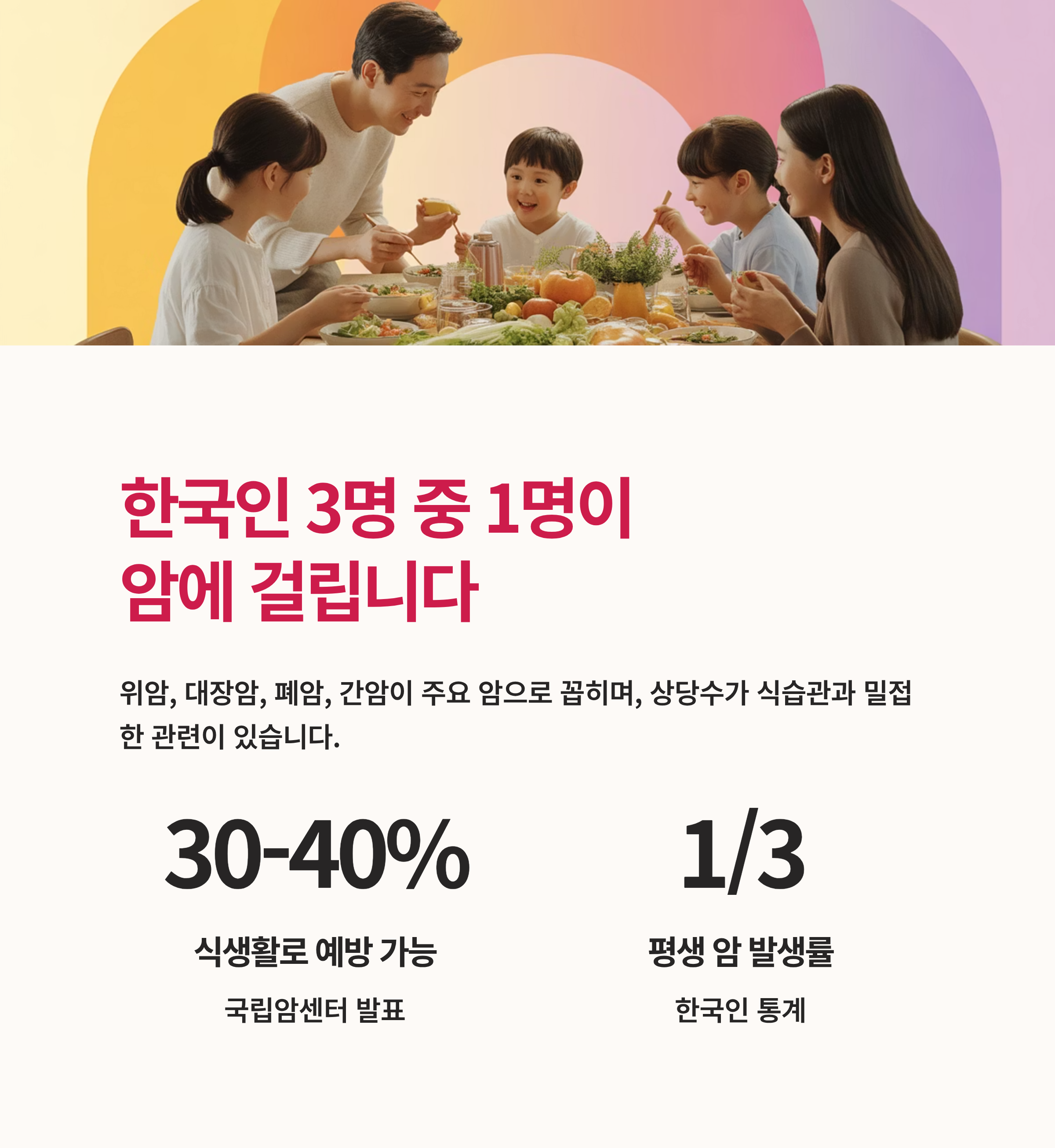 암 발생률 1위 한국, 식탁에서 예방이 시작됩니다