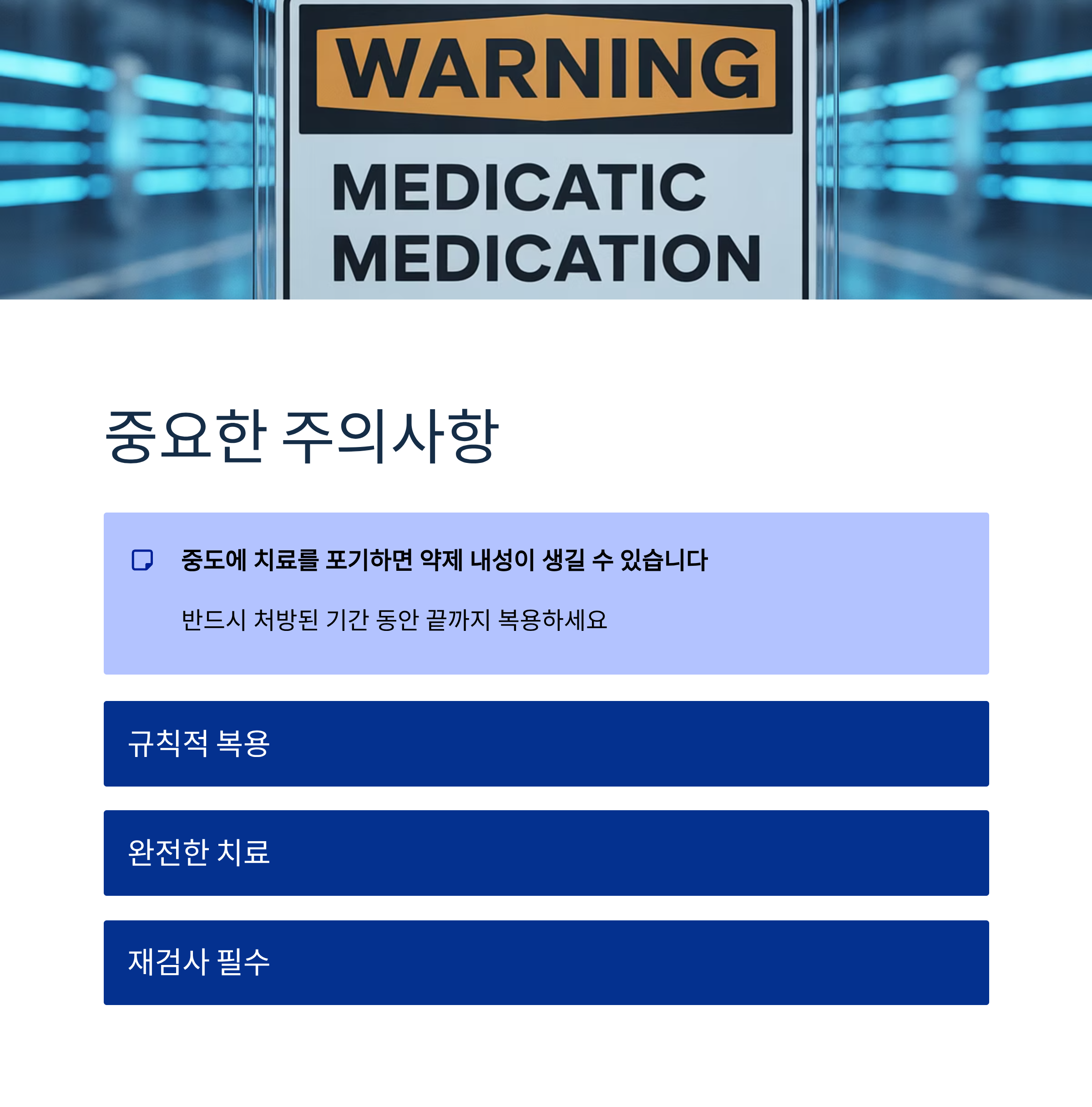 치료 4주 후에는 요소호기검사로 세균 박멸 여부를 재검사해야 하며, 1차 치료 실패 시 약제를 변경해 2차 제균 치료를 진행합니다. 중도에 치료를 포기하면 약제 내성이 생길 수 있어 끝까지 복용하는 것이 중요합니다.