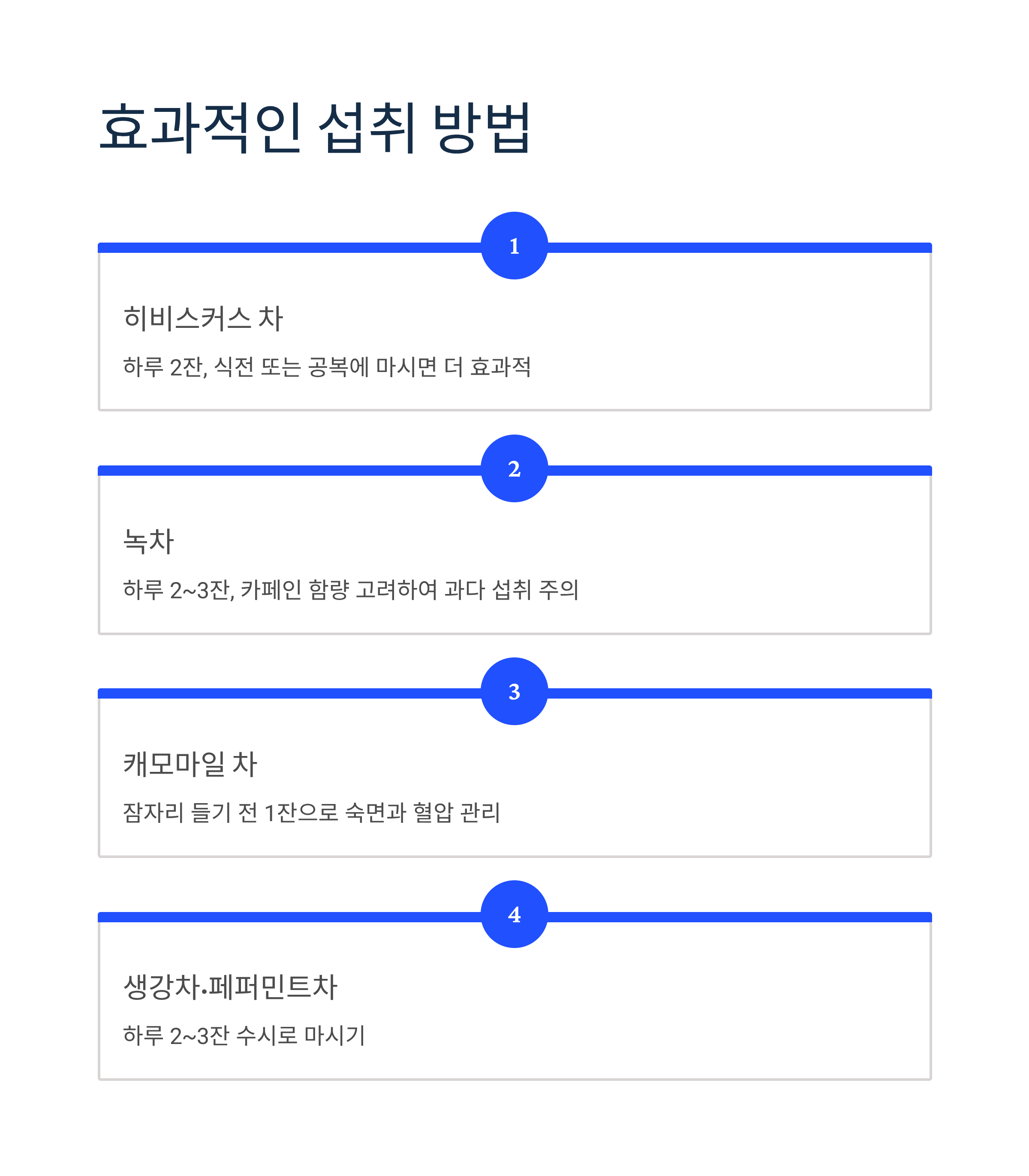 - 꾸준함이 중요: 단기간이 아닌 장기적으로 꾸준히 마셔야 효과