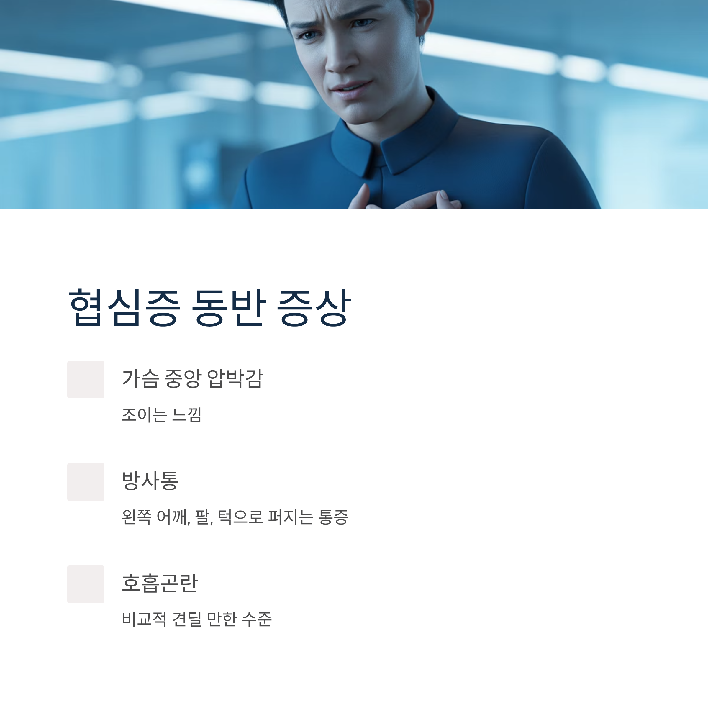 하지만 불안정형 협심증은 심근경색으로 진행될 수 있어 절대 방치하면 안 됩니다. 가슴 통증이 반복되거나 패턴이 변한다면 즉시 심장내과 전문의와 상담하세요.
