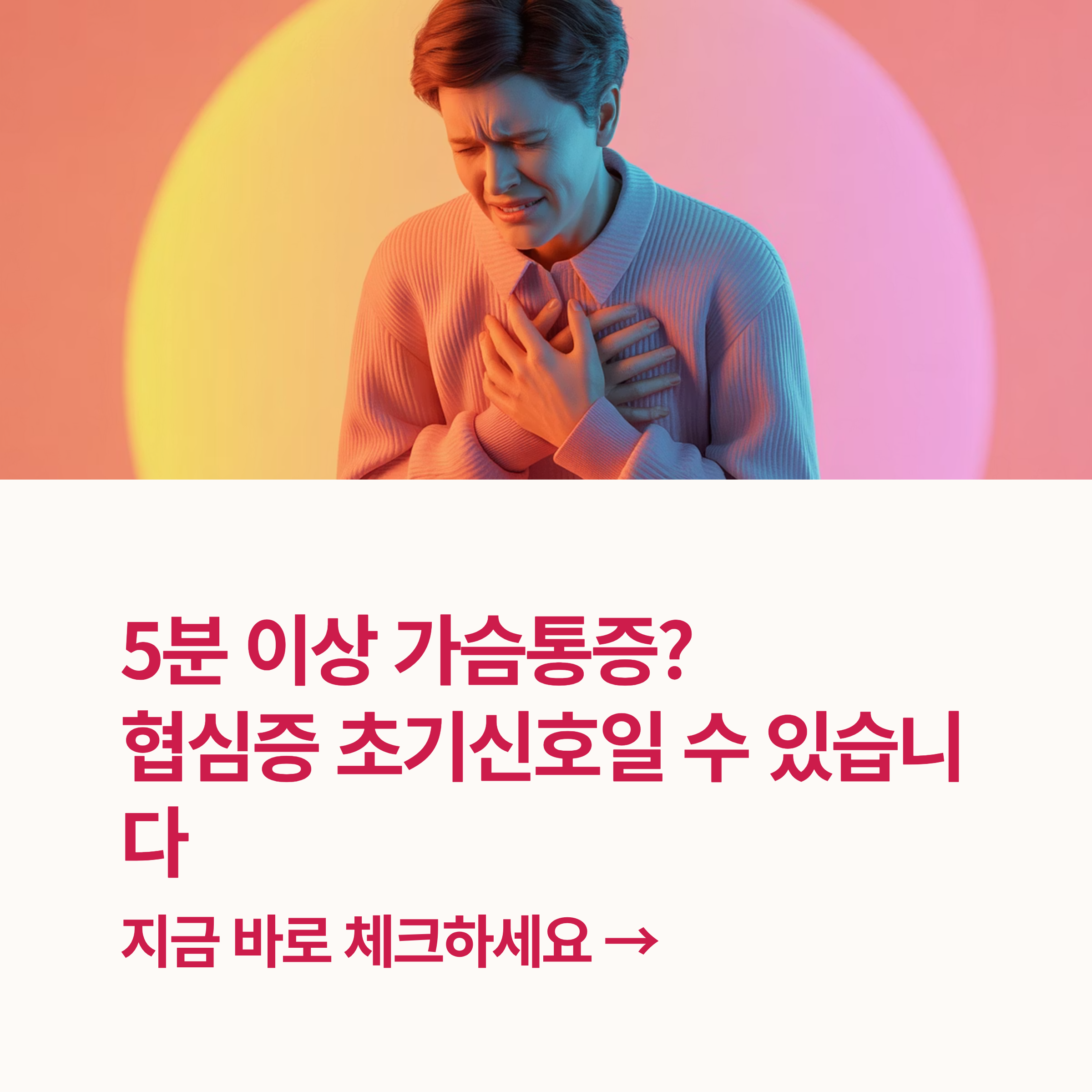 가슴 통증이라고 모두가 협심증은 아니며, 위장질환이나 신경증, 근육통도 원인일 수 있습니다. 하지만 잠깐의 증상이라도 평소와 다르게 느껴진다면 즉시 전문의 진찰을 받아야 합니다.