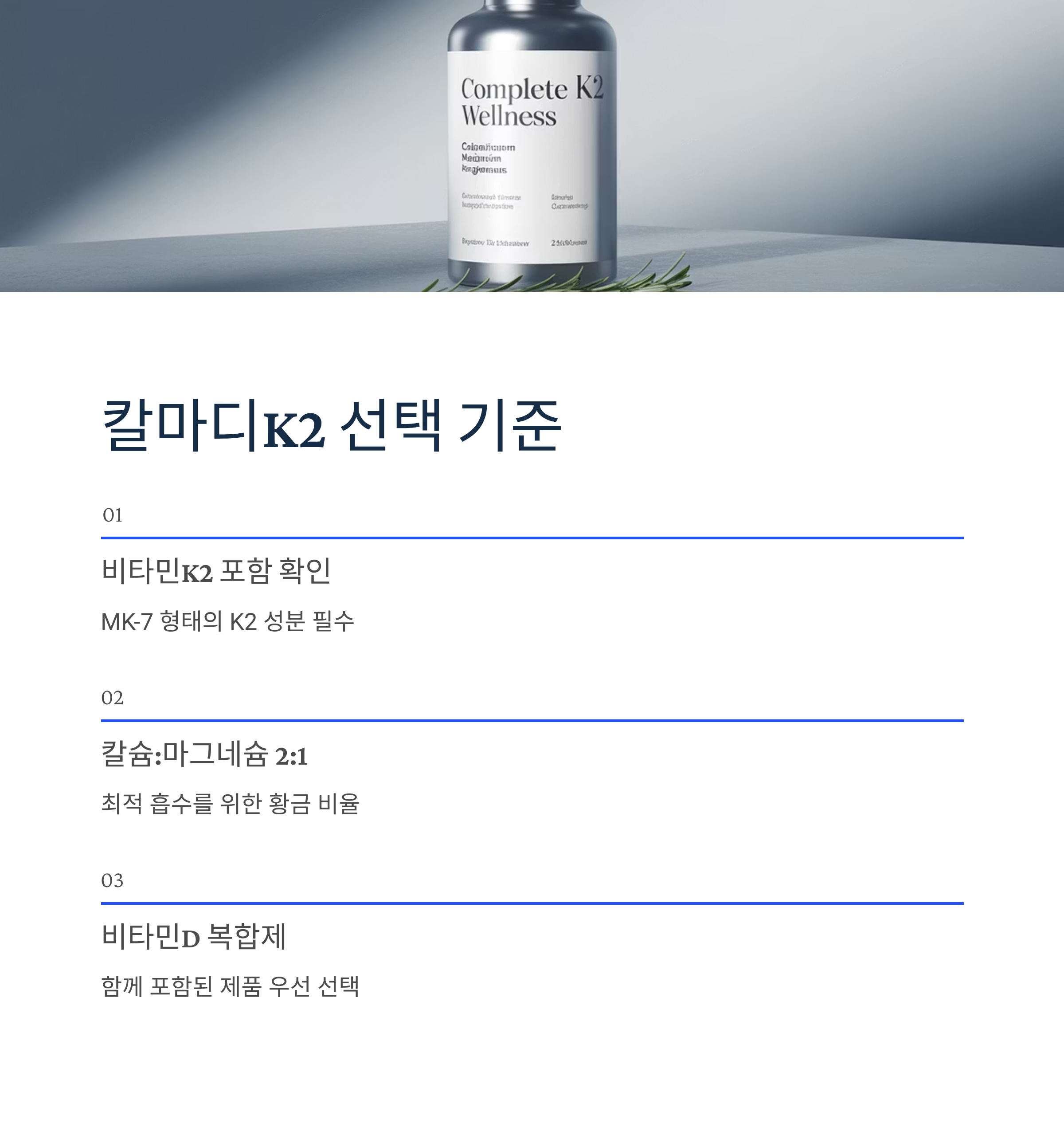 3. 칼슘+마그네슘+비타민K2: 뼈 건강의 골든 트라이앵글