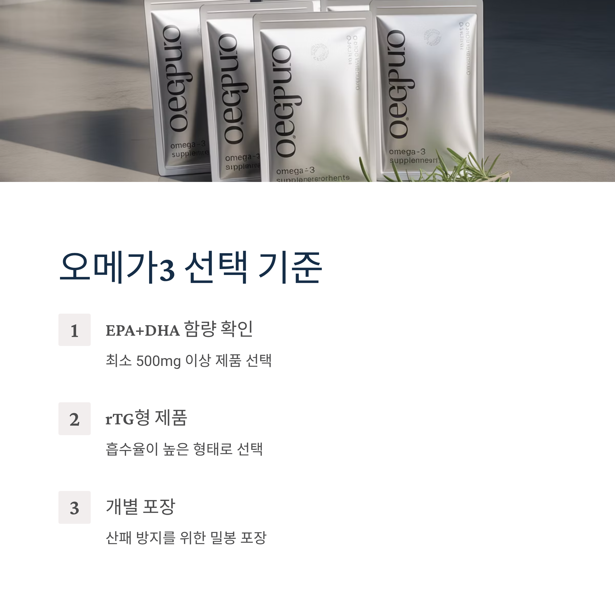 - EPA+DHA 함량 확인 (최소 500mg 이상)