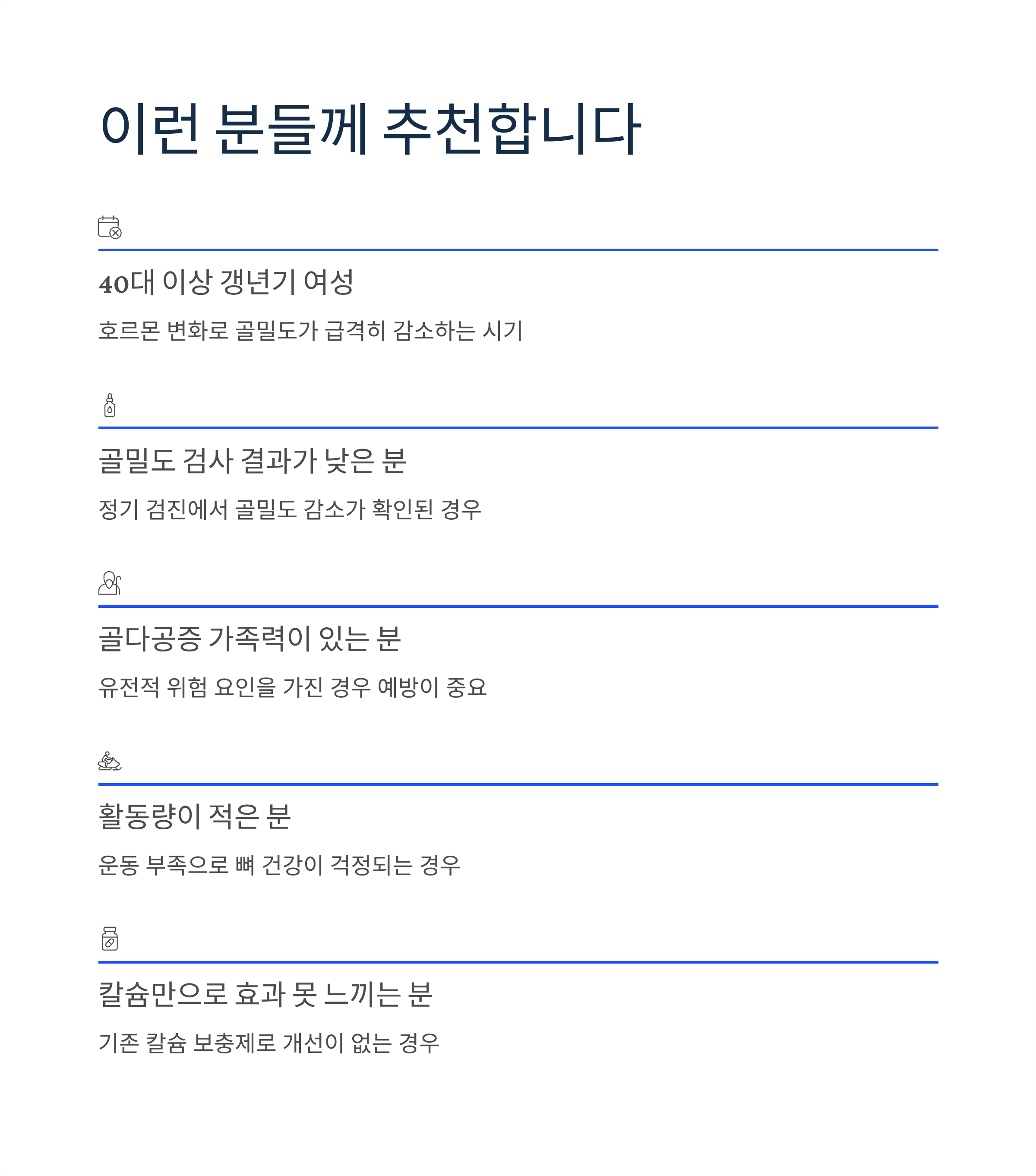 - 활동량이 적어 뼈 건강이 걱정되는 분